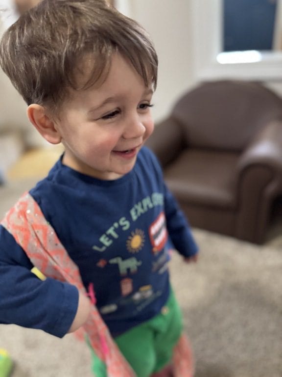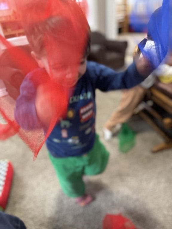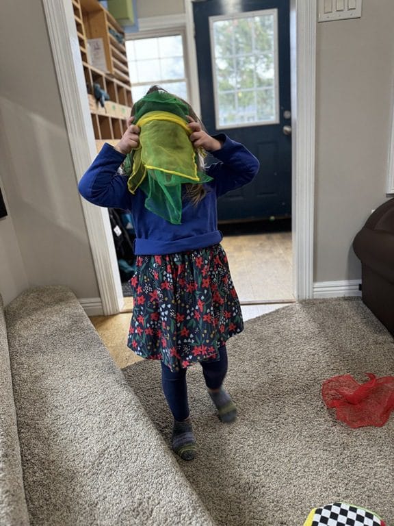 Yesterday evening, one of our kids asked to read the story “Captain Flinn.and the Pirate Dinosaurs Missing Treasure”. The group that was listening to the story loved it so much they became suddenly excited about pirates. This morning, one of our kids came in the door still talking about pirates as though he had never left. We decided to set up some pirate dress-up and building activities so kids could further explore this imaginative interest.