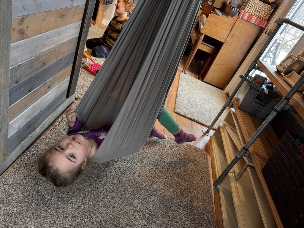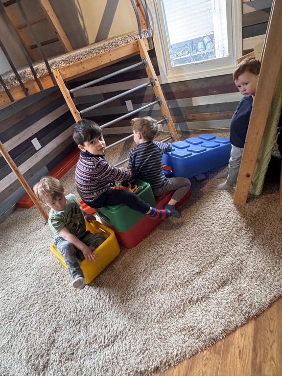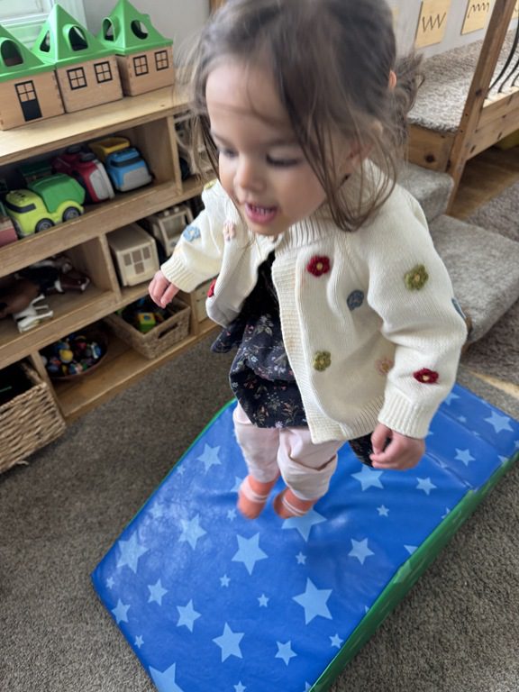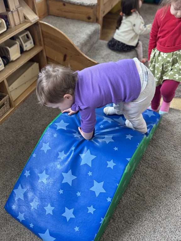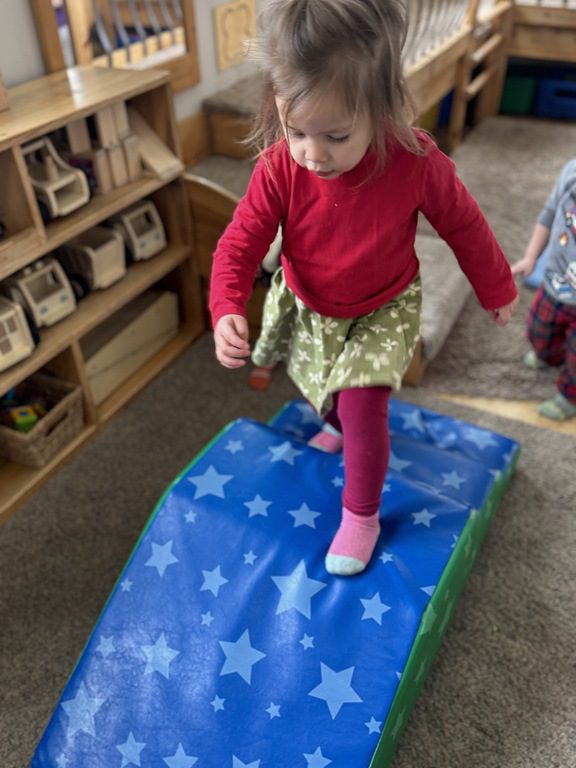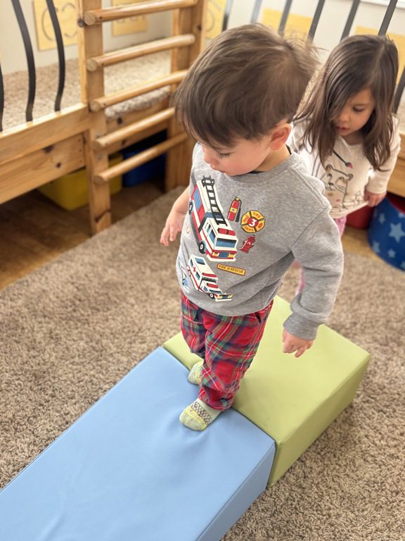 Later, we climbed on tumble mats! We took turns going up them and running down the ramps.