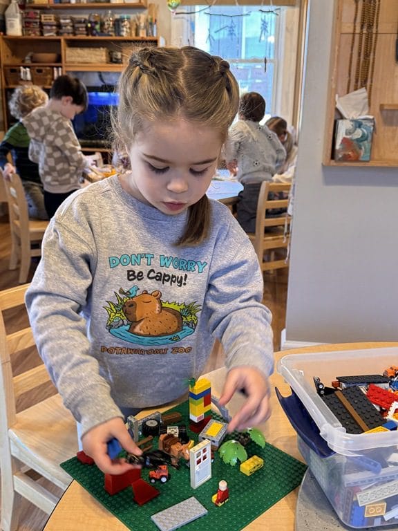 This morning a friends shared that they had an idea for a project. The idea was to make a model of our classroom. We talked about what materials we could use to make this idea into a reality. We found some cardboard, paper towel rolls and matboard scraps. We brain stormed and problem solved with some of our interested kids until we had a plan. A teacher used the big scissors to cut the cardboard shapes out shapes the kids asked to start building with, but otherwise they worked as an independent small group. Friends demonstrated some amazing teamwork and collaboration as they made models of our classroom round table, art table, counter, sink, refrigerator, cabinets, island, chairs and even the rice cooker! The project went on all morning and one friend shared that they would be working on it for “another day and then another day after that”:) During this child lead building project, kids were also building their executive planning skills, creative problem solving skills, social emotional development, fine motor development, plus their ability to reason and learn through trial and error,
