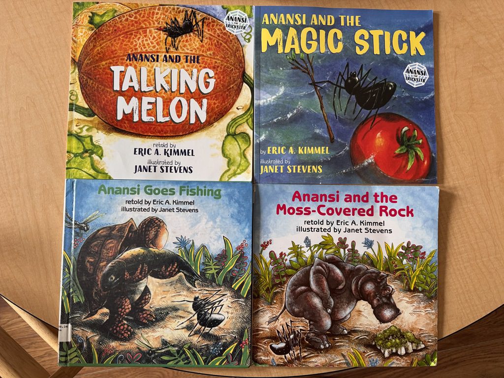 Over the past week, we have been reading Anansi stories. These are re-telling’s of old African folk tails about Anansi the spider. He is the“trickster” in these humorous stories. The kids have really liked them so we just got a few more to add to our classroom library.