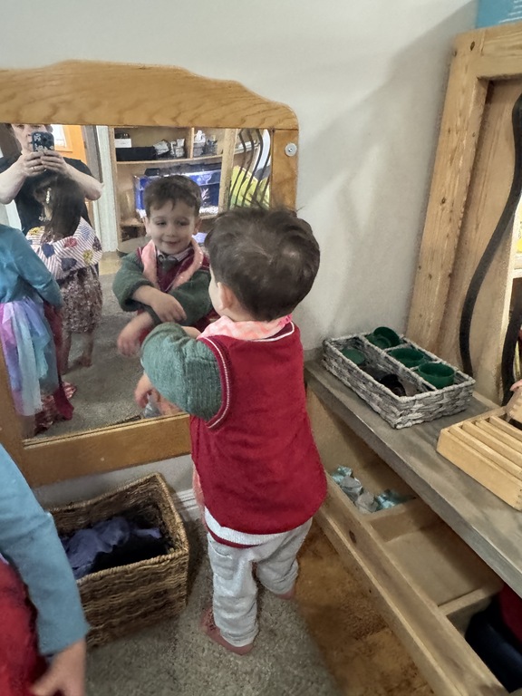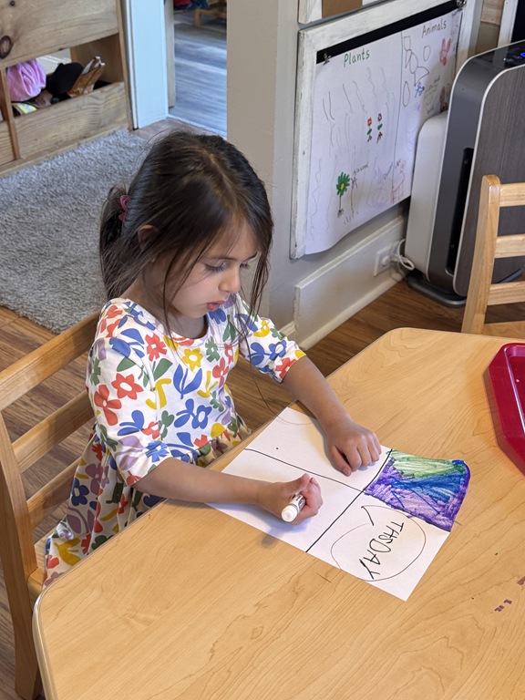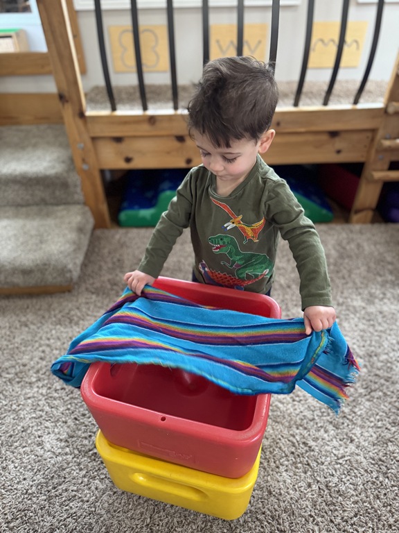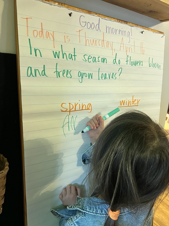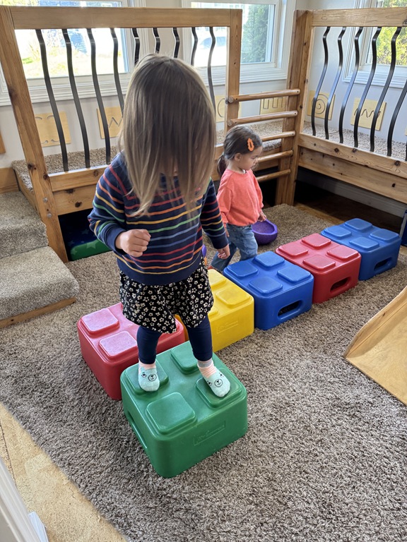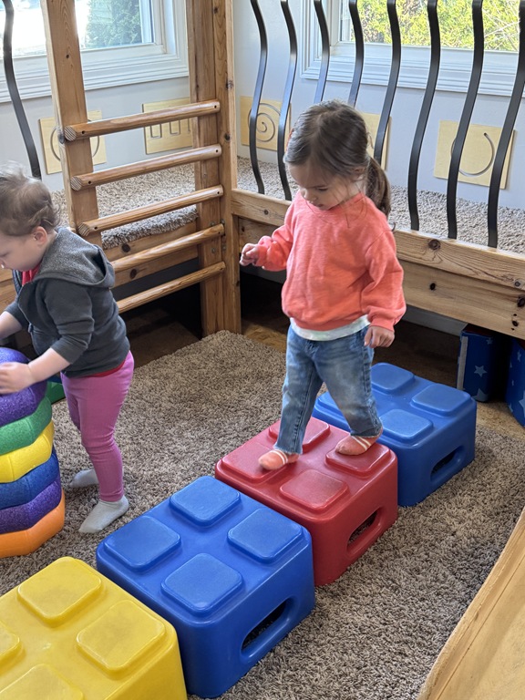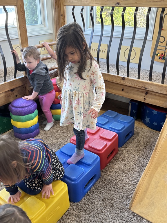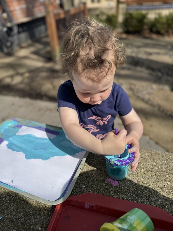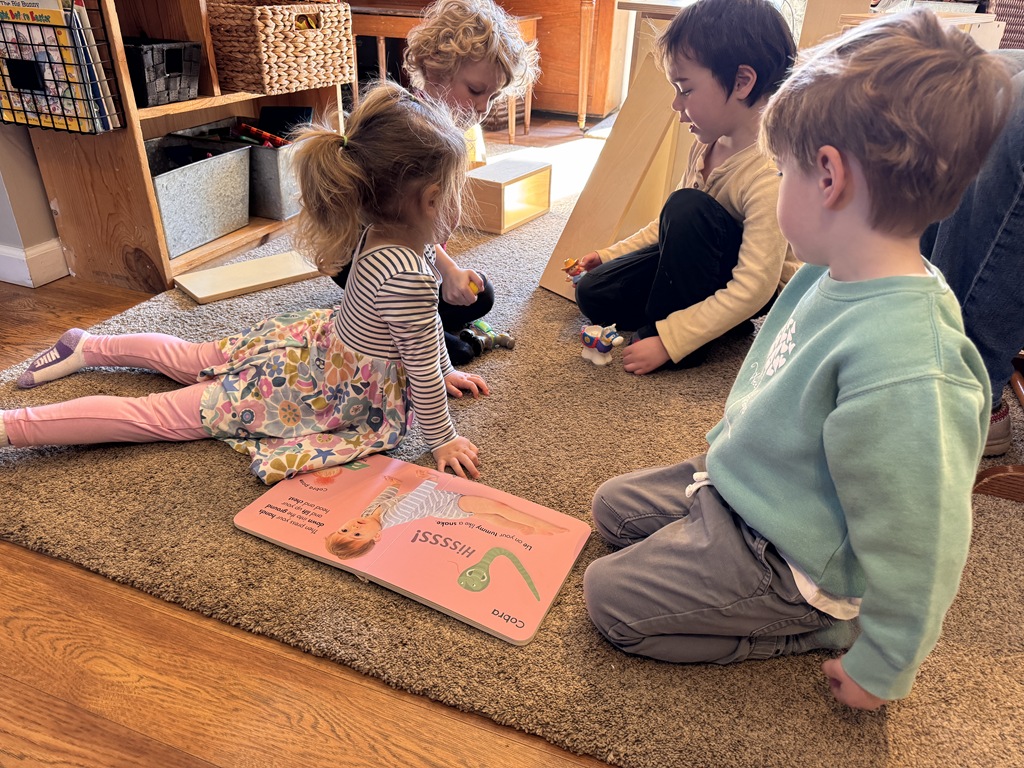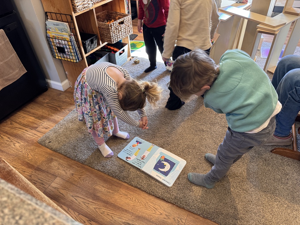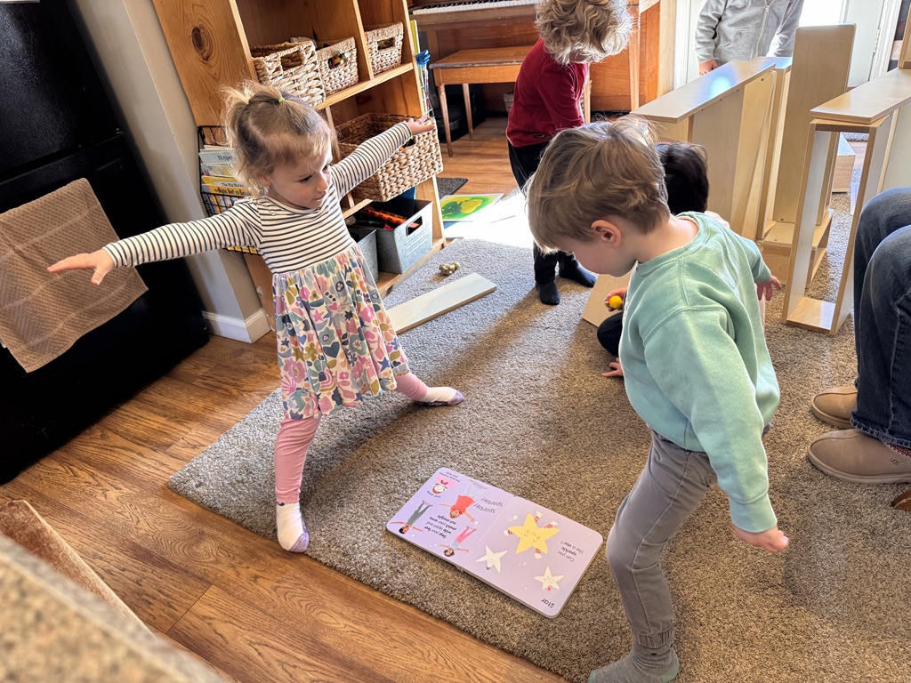 We have been practicing yoga from our “Yoga for children” book during group time every day. Some kids have been interested in getting the book out and trying the different poses on their own. We love to see our kids taking the initiative to practice what they learn in class and explore what interests them in this independent way!