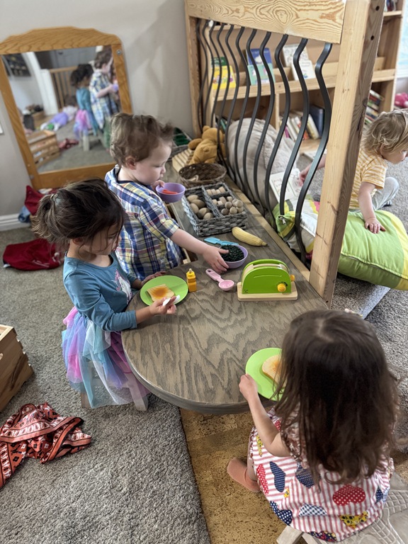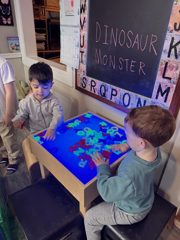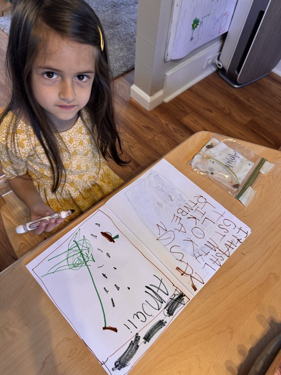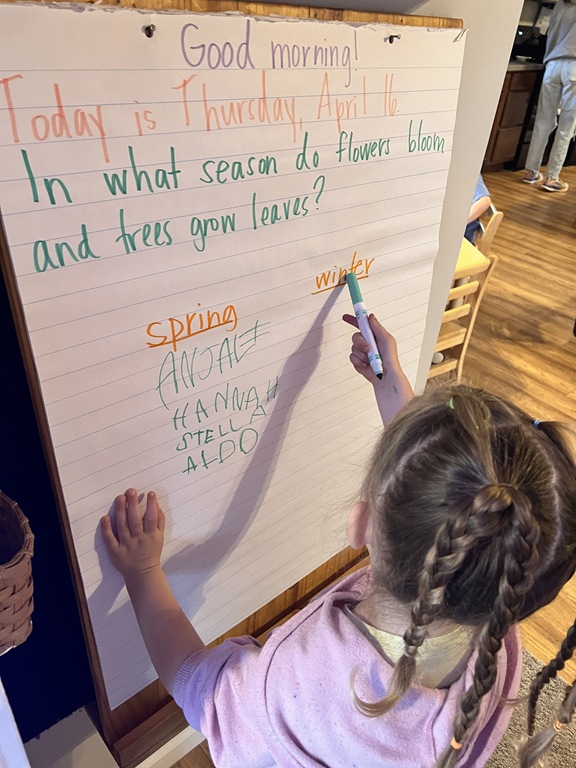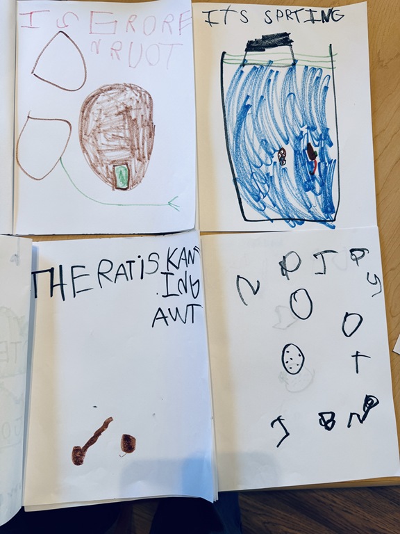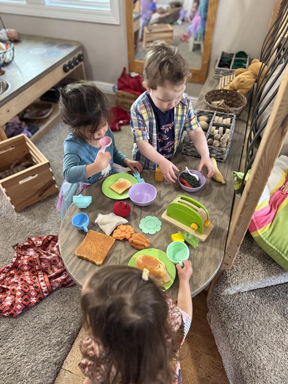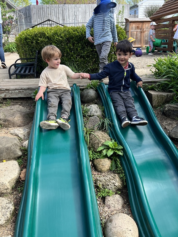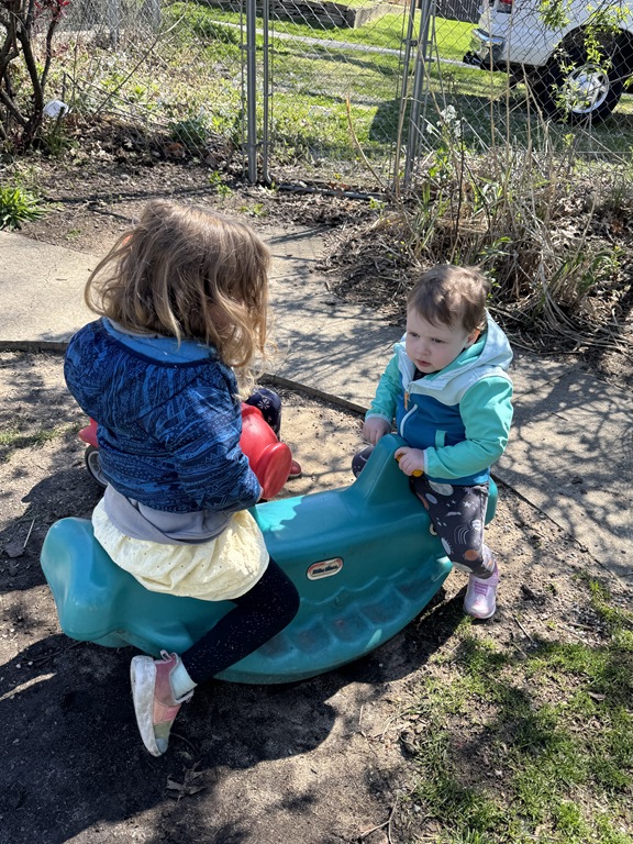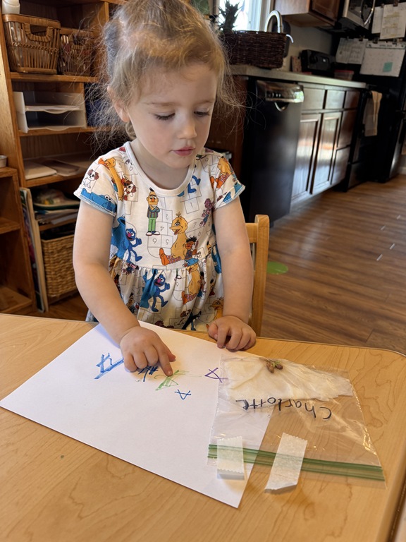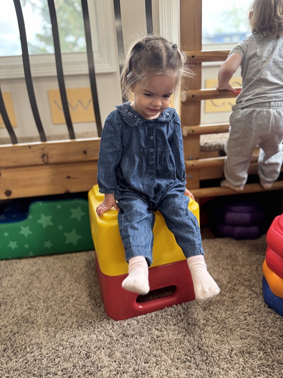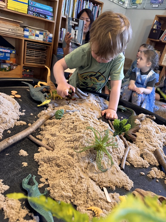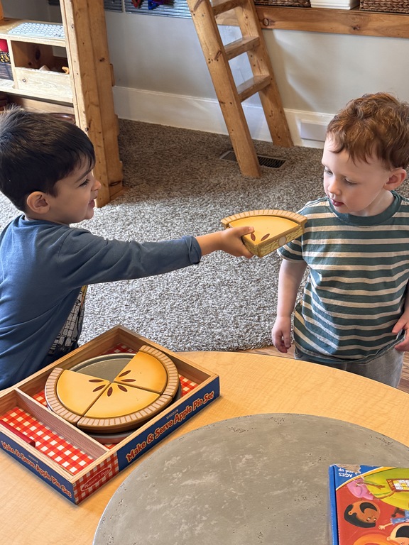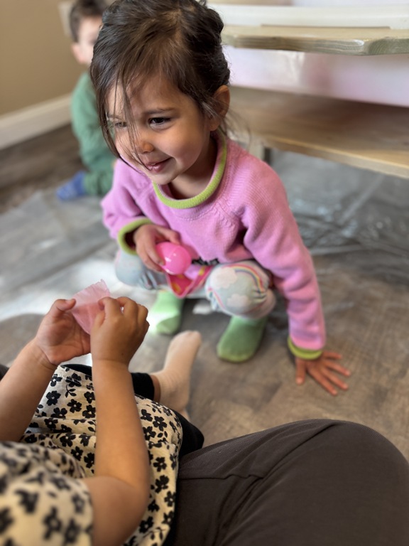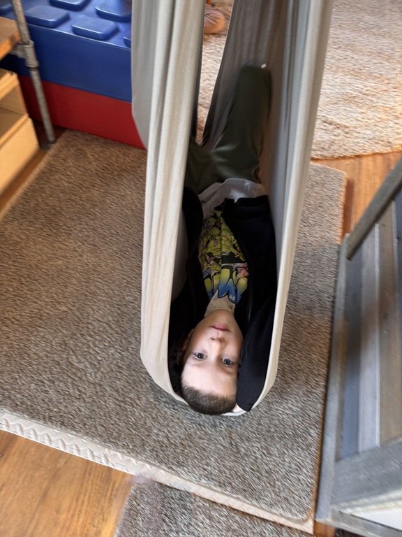 We have been practicing yoga from our “Yoga for children” book during group time every day. Some kids have been interested in getting the book out and trying the different poses on their own. We love to see our kids taking the initiative to practice what they learn in class and explore what interests them in this independent way!