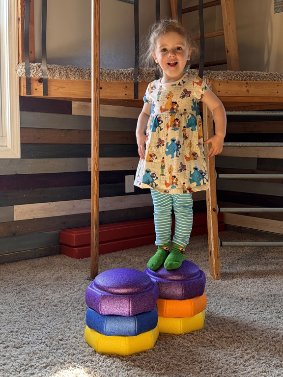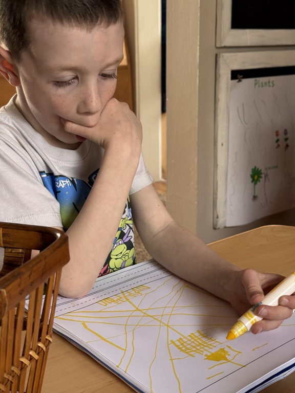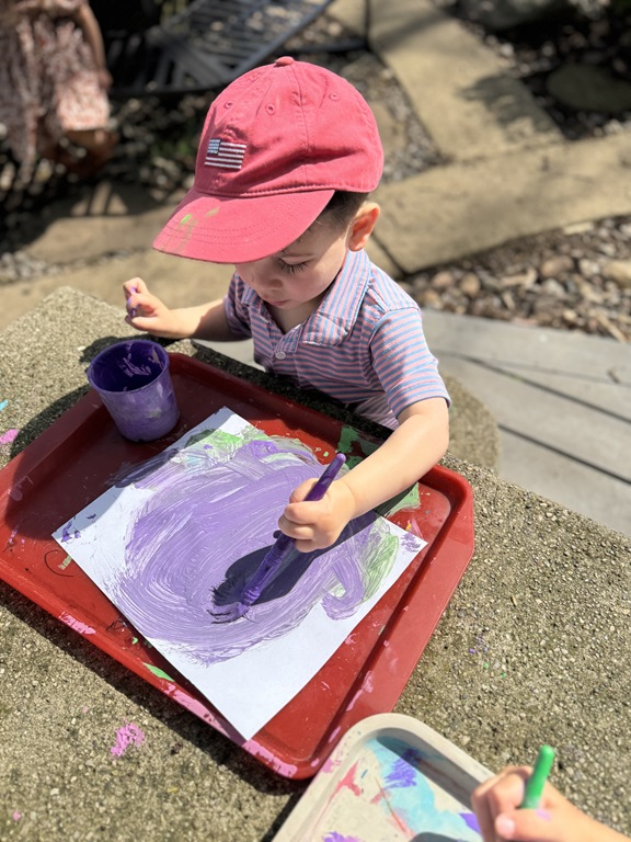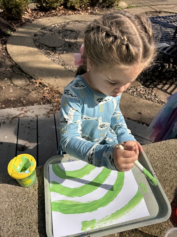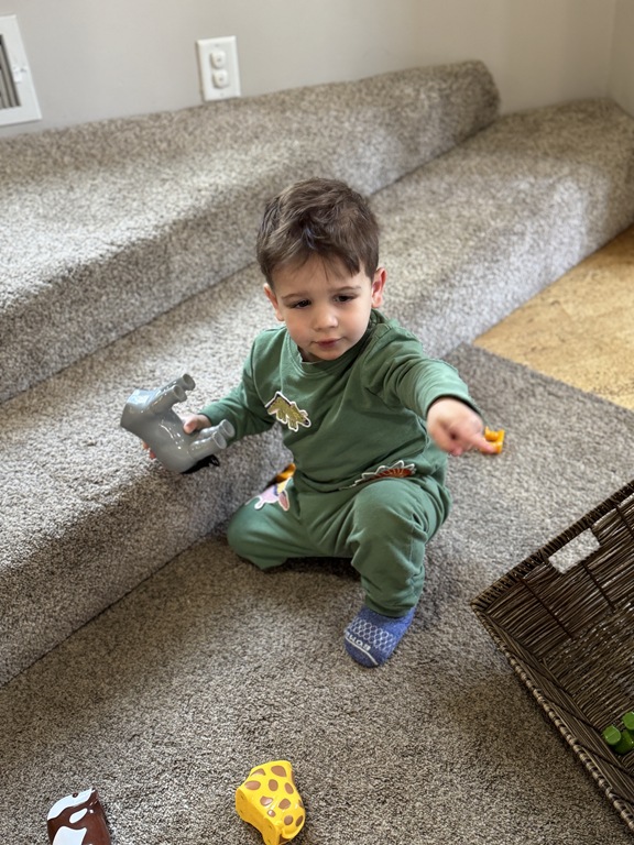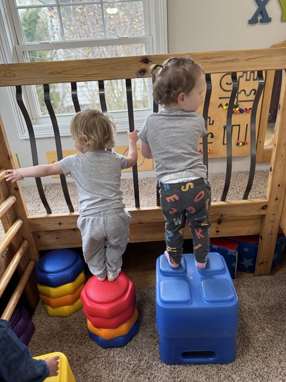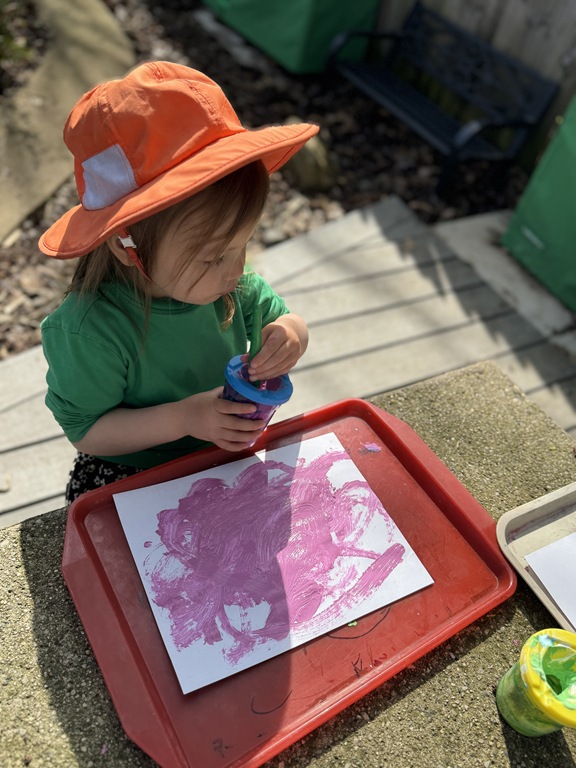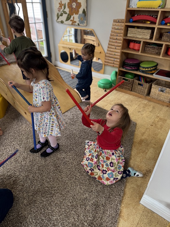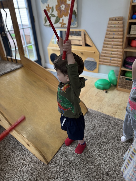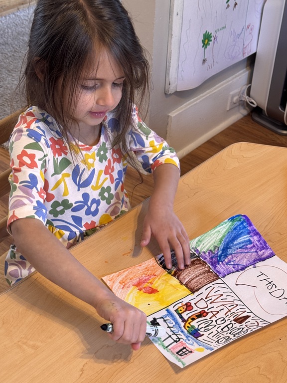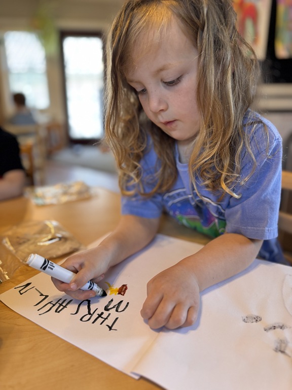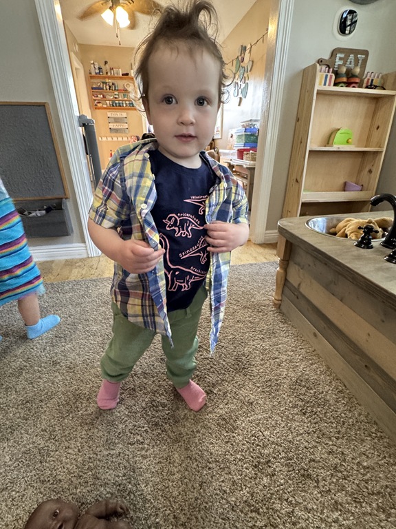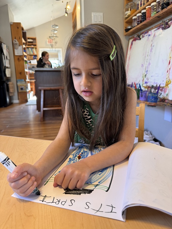 We have been practicing yoga from our “Yoga for children” book during group time every day. Some kids have been interested in getting the book out and trying the different poses on their own. We love to see our kids taking the initiative to practice what they learn in class and explore what interests them in this independent way!