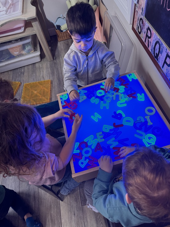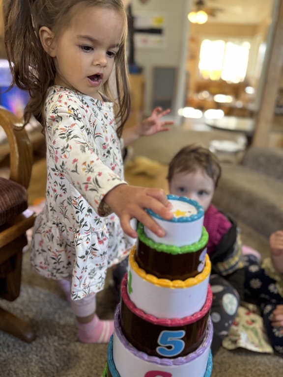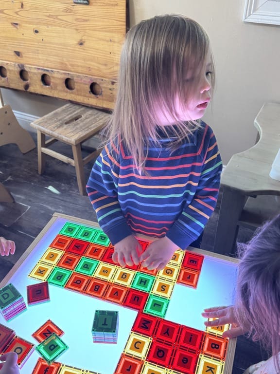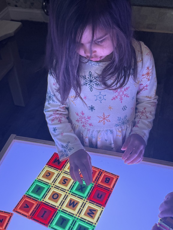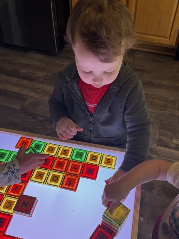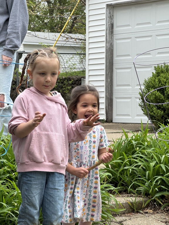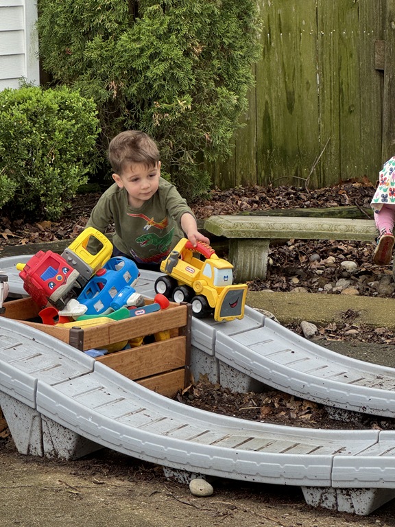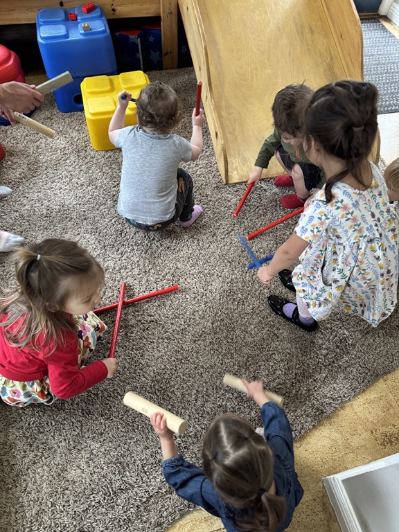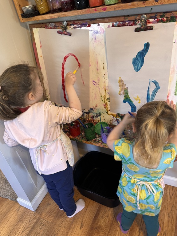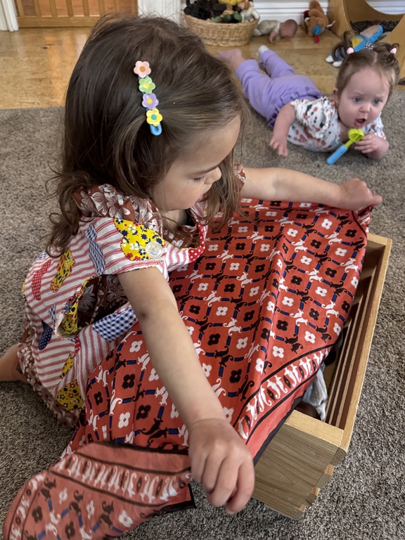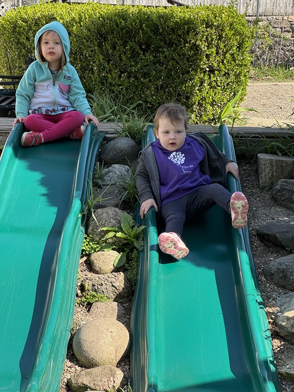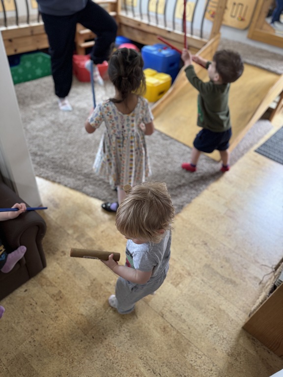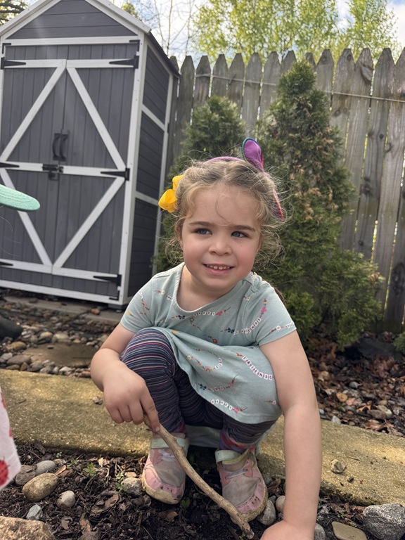 We added some loose parts building materials to the tuff tray this morning to continue exploring various ways to build. A couple of friends spent all morning building a “tooth fairy castle”. They practiced balancing objects and learning about how different sizes shapes and weights behave in space. This kind of play is how kids begin to explore applied physics. So much is happening in what seems like simple play.