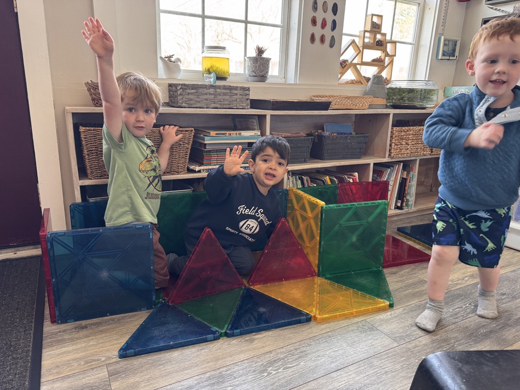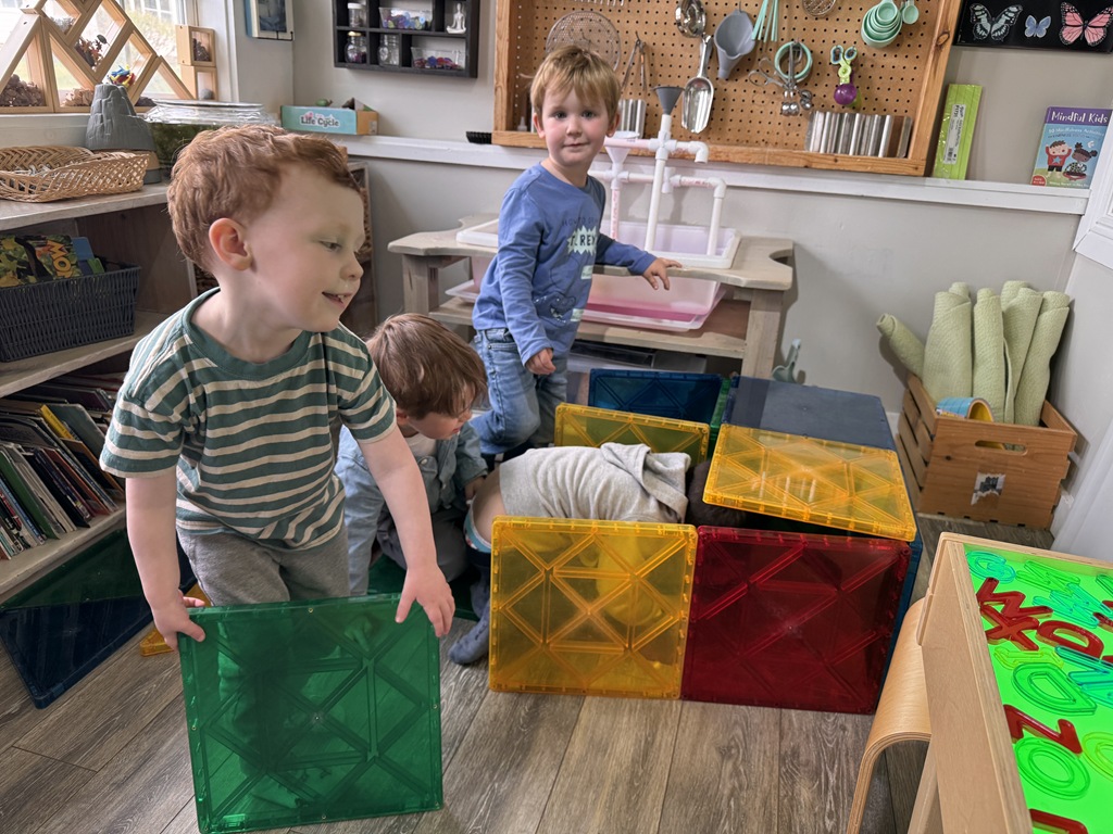 Child led building was the theme of the day. Several kids decided to utilize our Hollow Block collection this morning to experiment with some building ideas. We noticed the kids doing a great job of problem solving together. When they experienced some collapses, instead of getting frustrated, they discussed how to build it differently.