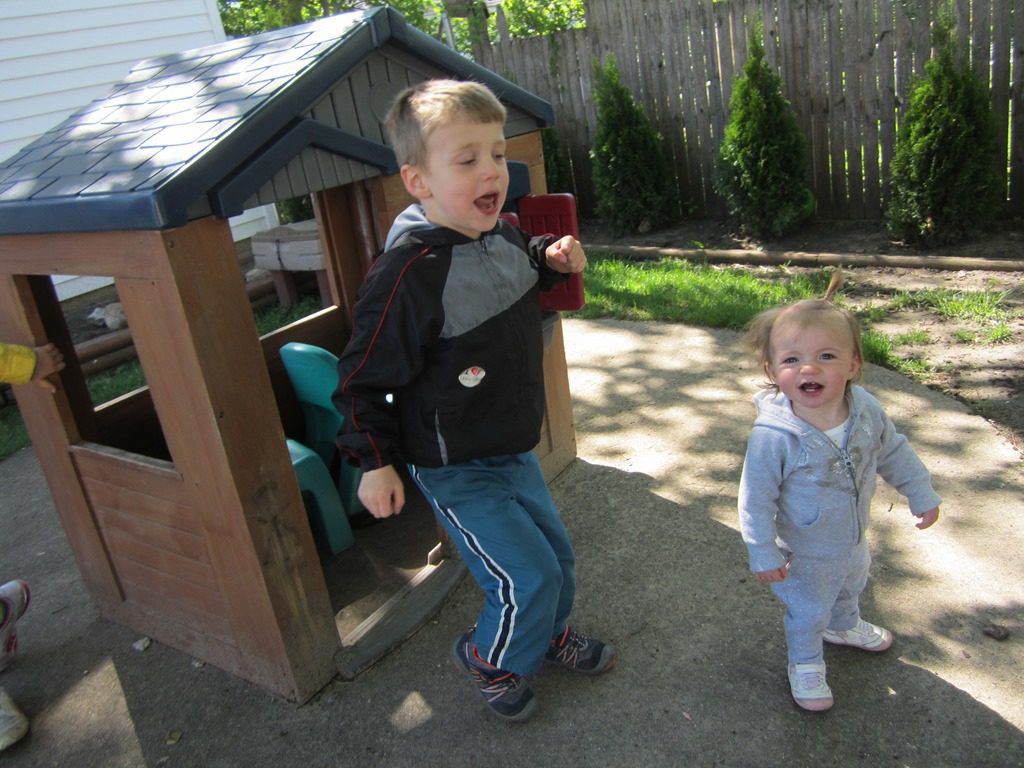 It was a sibling kind of morning. Tate and his older sister Sloane love getting to spend time outside together while Anna’s big brother Owen ran straight up to her when she came outside.