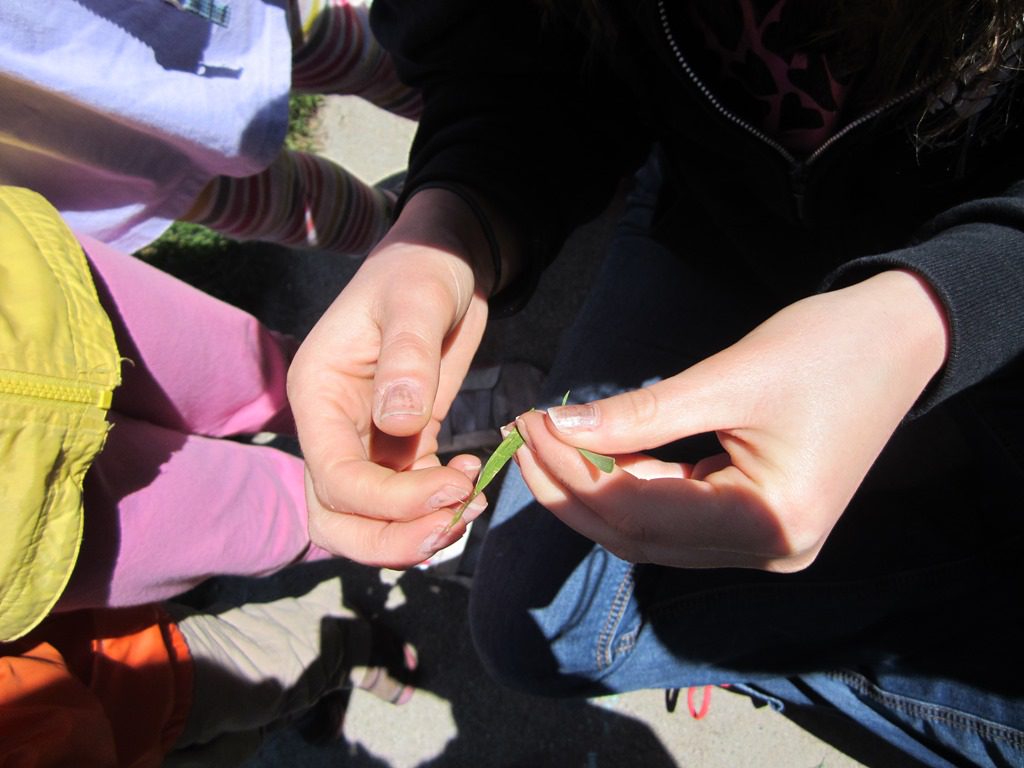 Something that started out as simple and easy turned into a great musical lesson! A piece of grass was used to make high and low pitch sounds. What started out as a few friends listening in quickly became a group of ten. Nature items can be used for a number of things! This is where creativity is born!