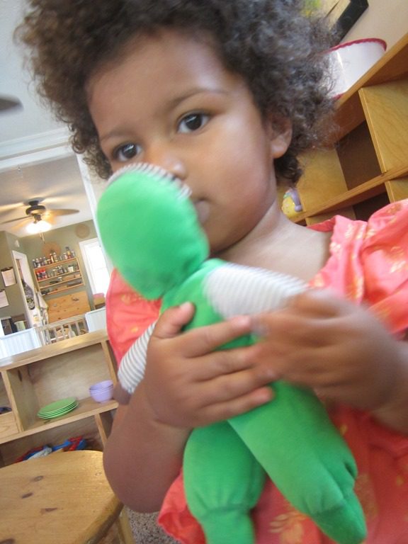Maya and Nahla used their BIG squeezes on their baby dolls this morning. Maya noticed that her baby had a boo-boo on her hand. She kissed it and proceeded to give her a hug. Play is where children learn.