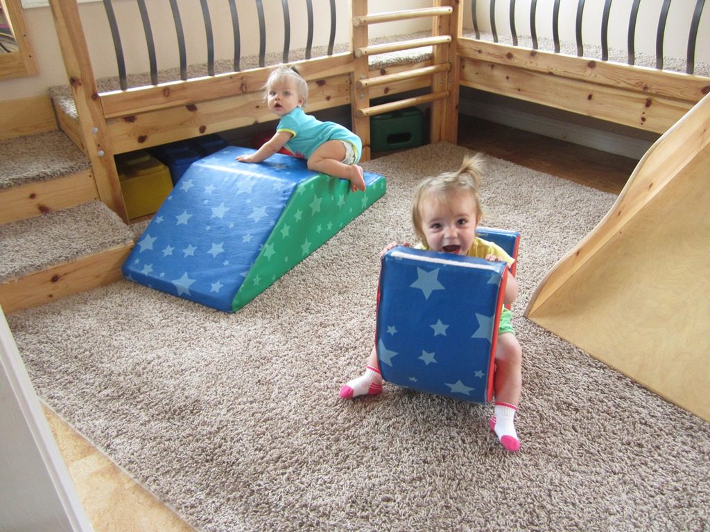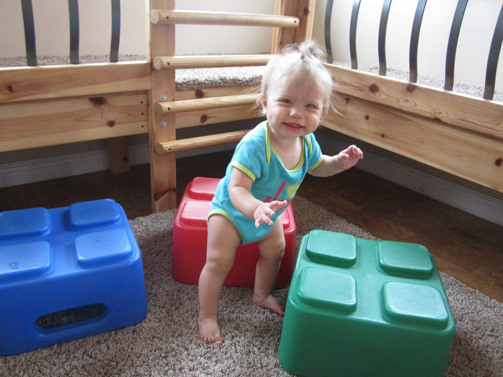 Anna and Annabelle joined one another in the gross motor area where Annabelle beamed with pride as she stood up all by herself!