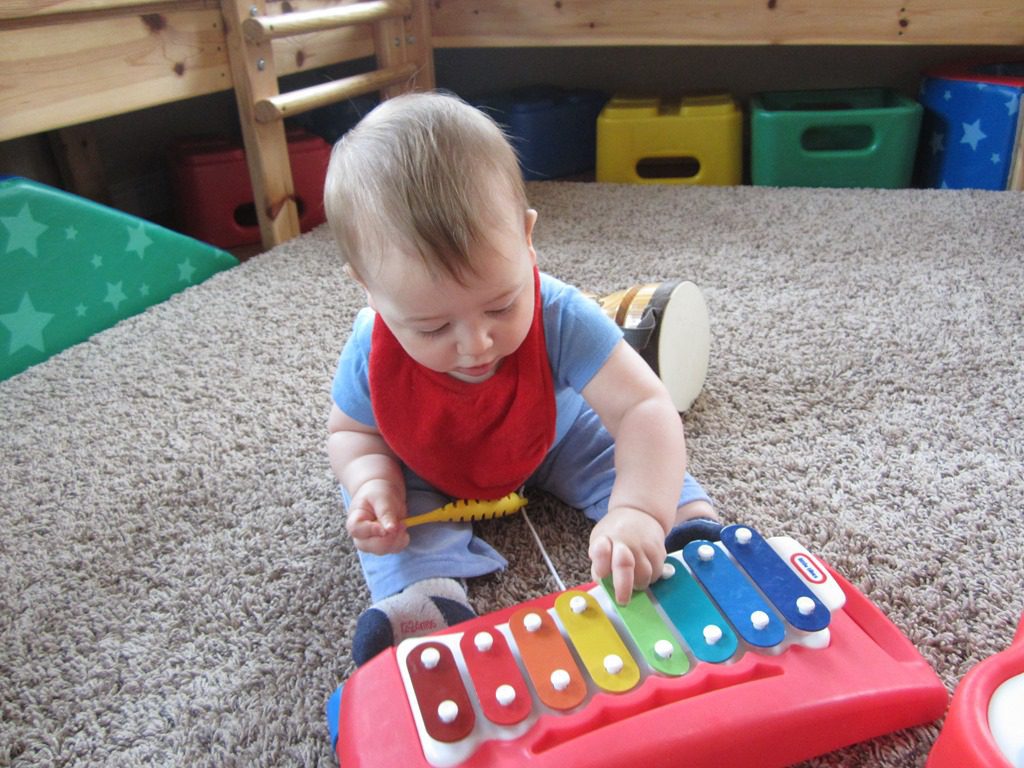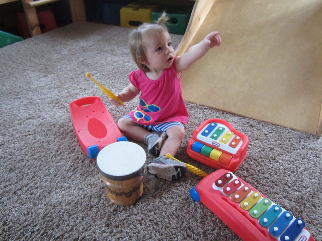 Our friends spent some time playing with the musical instruments this morning.