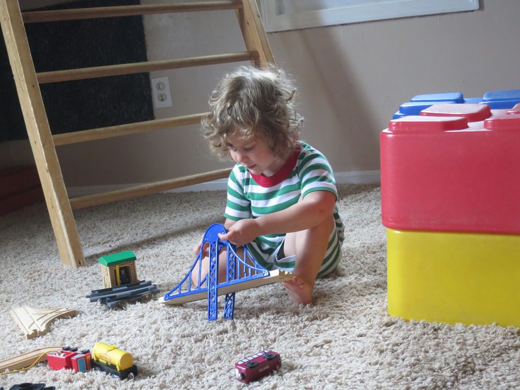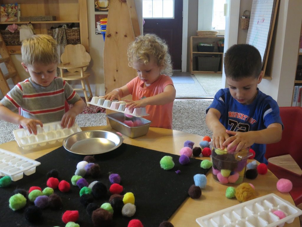 This afternoon has been a whirlwind of activity as well, with friends on the work bench and playing with play dough at the art table. Eren requested the fuzzy balls from downstairs and made “bread”.