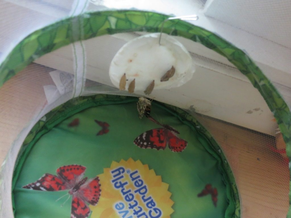 Today was also exciting as this afternoon, one of the chrysalises hatched! We are still waiting to see the butterfly fully open its wings and fly.