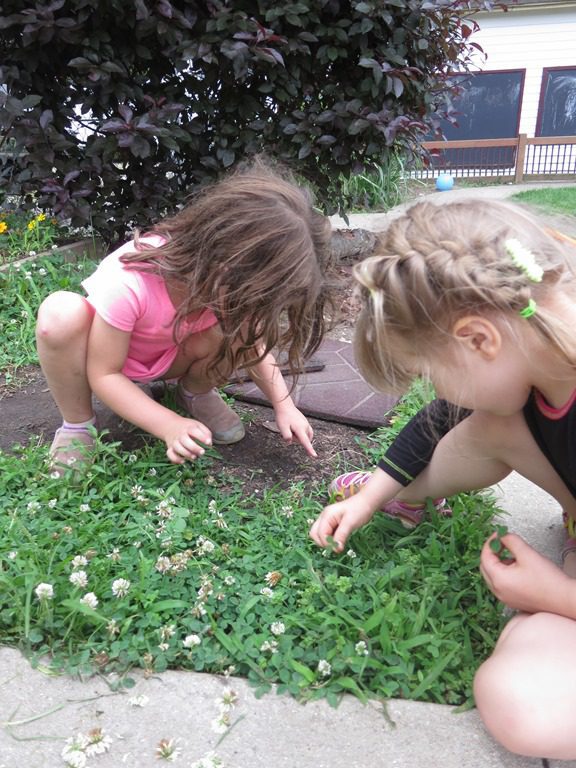 The rest of our day has been well spent playing in the sandbox, searching for four-leaf clovers and creating at the art table.