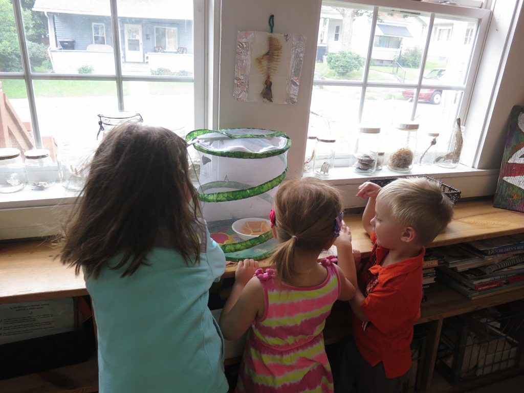 The exploration of caterpillars was especially relevant because over the weekend our caterpillars emerged from their chrysalises as beautiful butterflies! We have had lots of enjoyment observing their wing colors and their tongues as they eat the sugar water and oranges we put in their habitat.