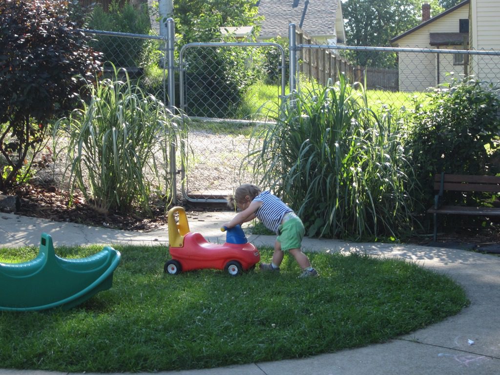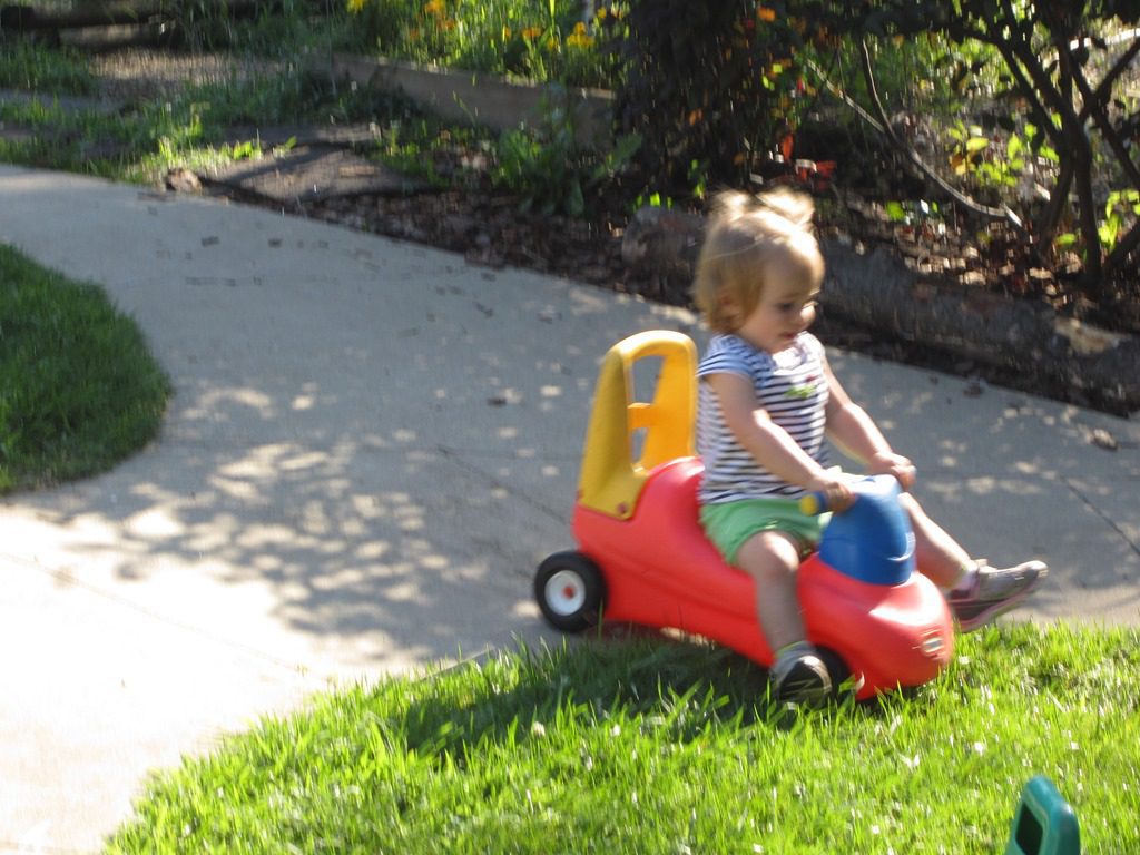 Anna rode a bike down the hill and then pushed it all the way back up.