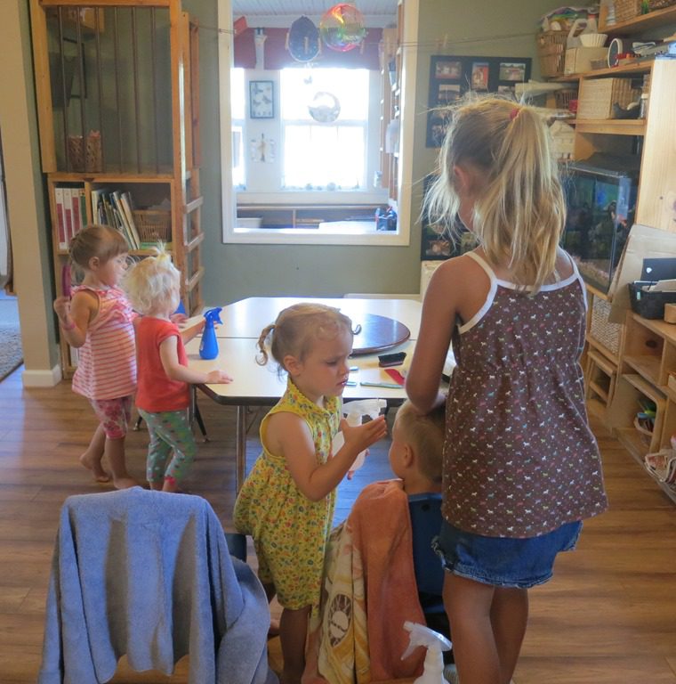 Today friends decided to open up a hair salon station. We got out a variety of combs, brushes, spray bottles, barrettes and towels. The hair salon is full of unique ways to practice fine motor skills, such as squeezing the spray bottle and opening/closing barrettes. There are also opportunities for improving hand-eye coordination in combing hair!