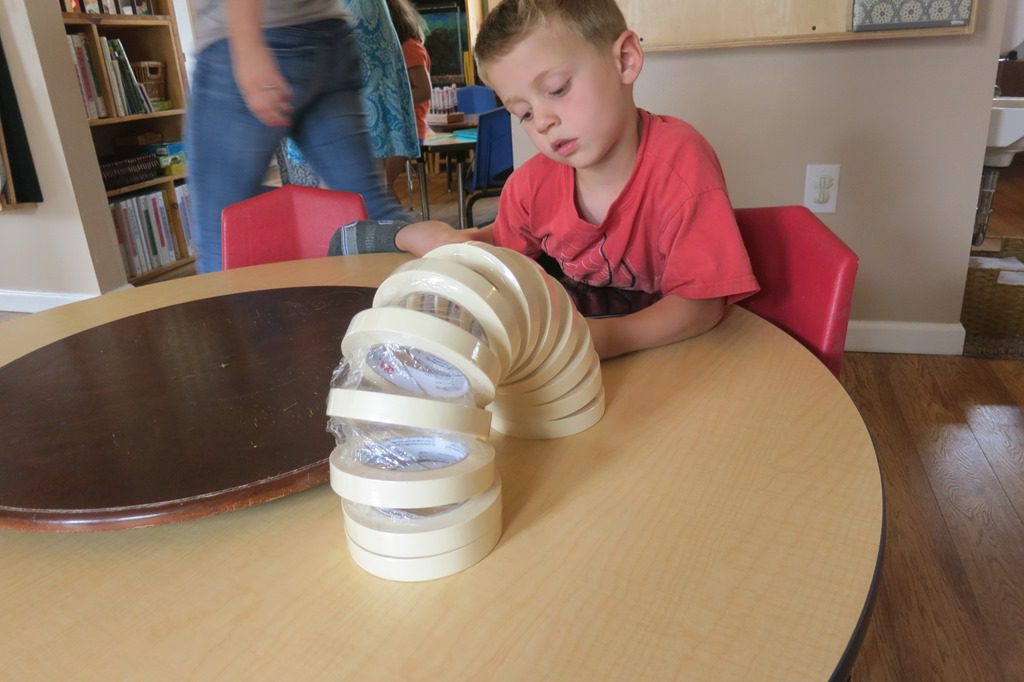 Oftentimes, the unlikeliest of materials become the most entertaining. Yesterday and today friends experimented with a huge roll of masking tapes that were delivered to the house.