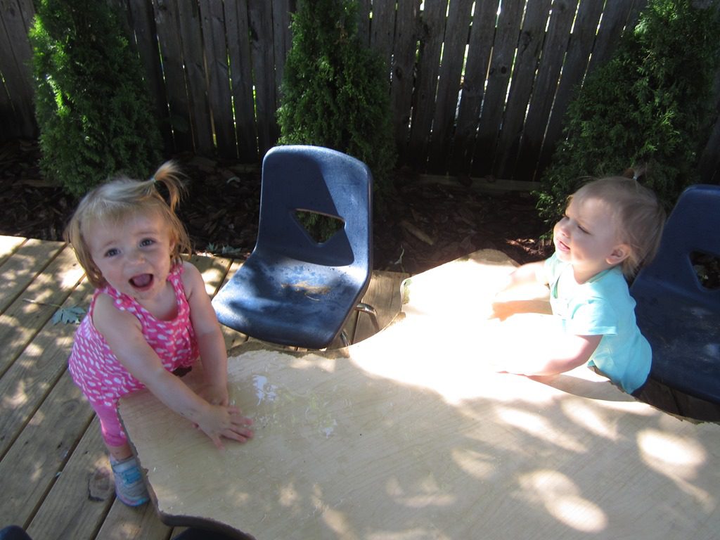 Anna and Annabelle had fun splashing in the rain water this morning.
