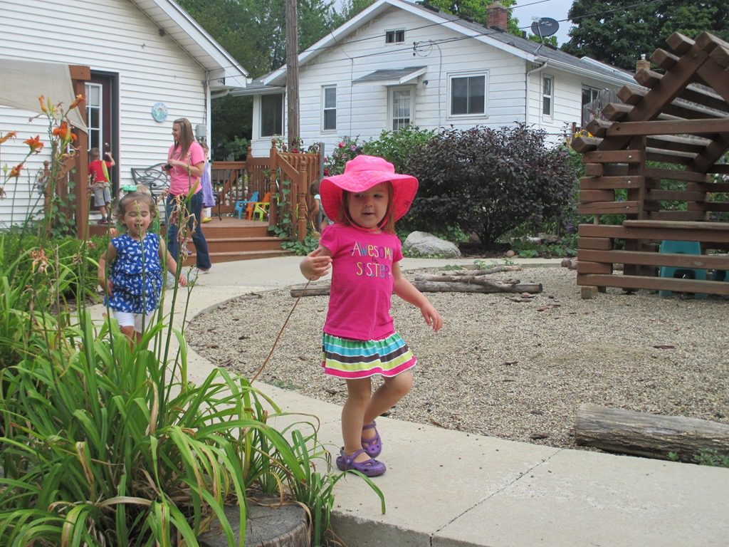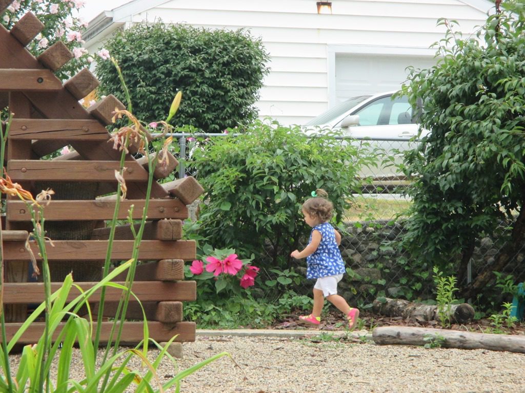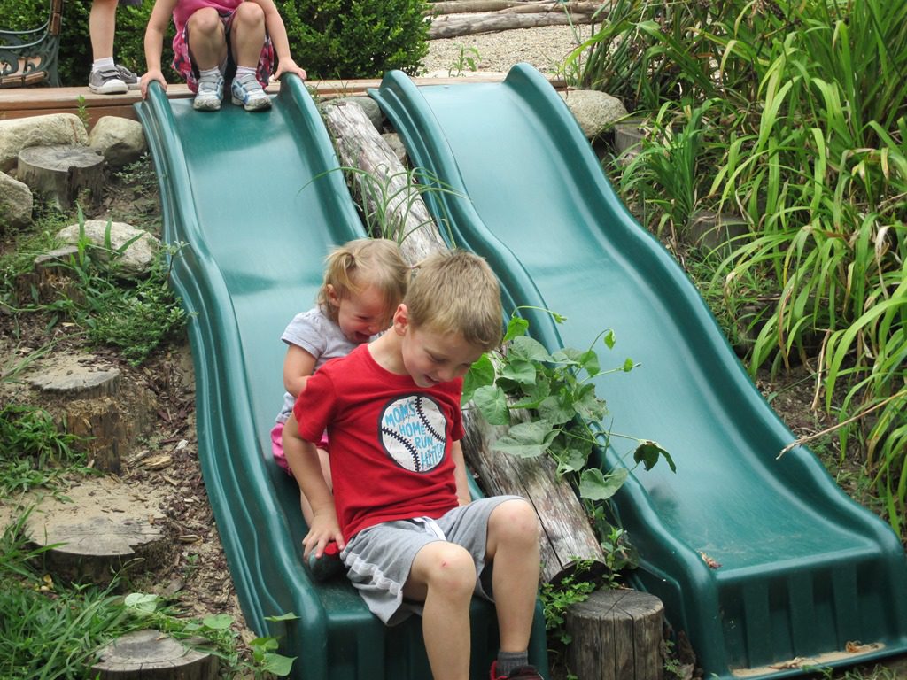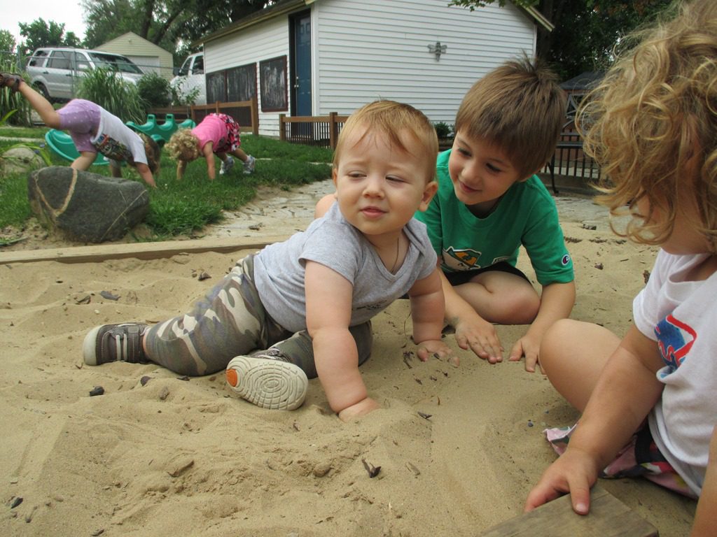 Anna went down the slide with big brother Owen, and David played in the sandbox with big brother Daniel. Ruby and Annabelle played in the sandbox while everyone else was napping and got excited when it started to sprinkle.