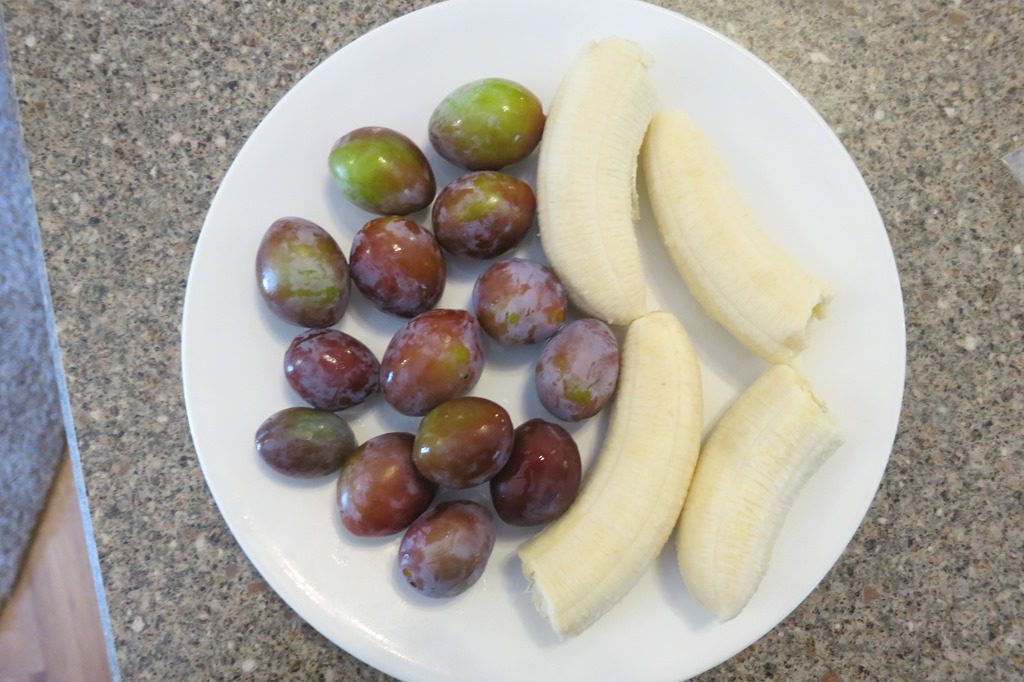 For breakfast, children had cornflakes and PPC green grapes. Lunch consisted of turkey and cream cheese on tortillas, plums(that we picked today!)/banana, and freshly picked tomatoes/peppers. PM snack was whole wheat bagels with peanut butter.