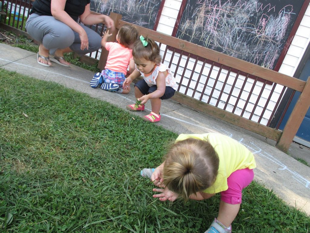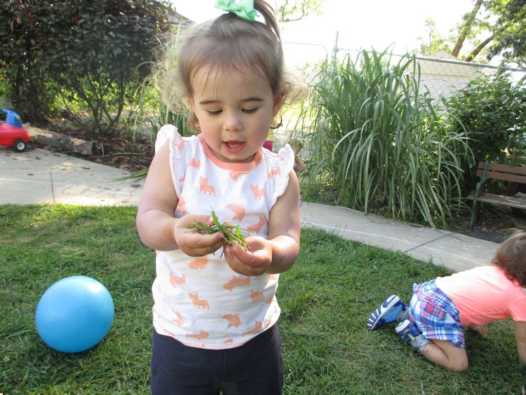 This morning, our friends had fun pulling grass out of the grown. Rosemary was picking big handfuls at a time!