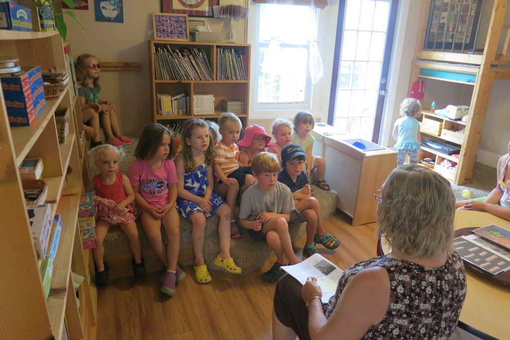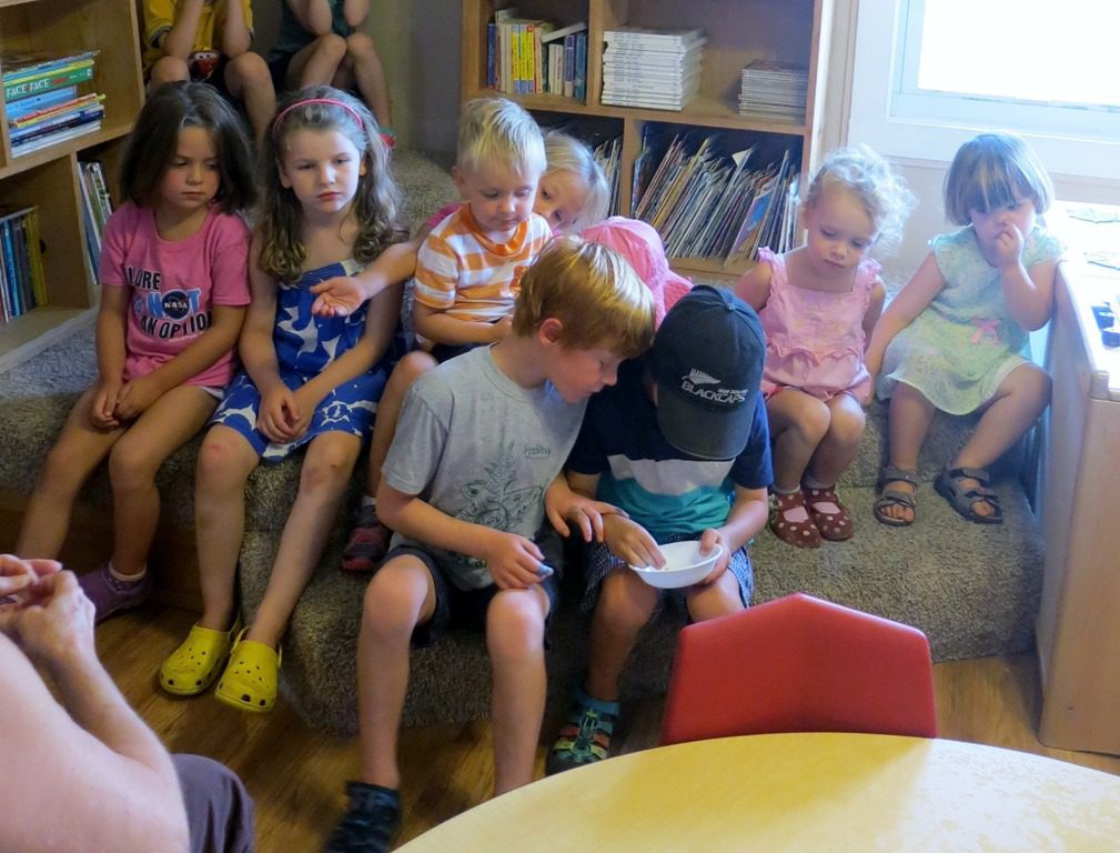 Today we also gathered in the reading area to learn more about crinoids, or what Wee Frienders call “Indian beads.” These fossils are commonly found in our rock pile in the back; friends often search for and collect them. Thanks to Elizabeth’s mom, we received lots of information on crinoids, including pictures. We were excited to find out more about these fossils. Thank you Kristin!