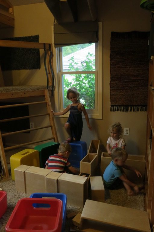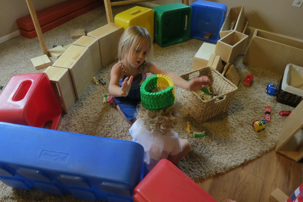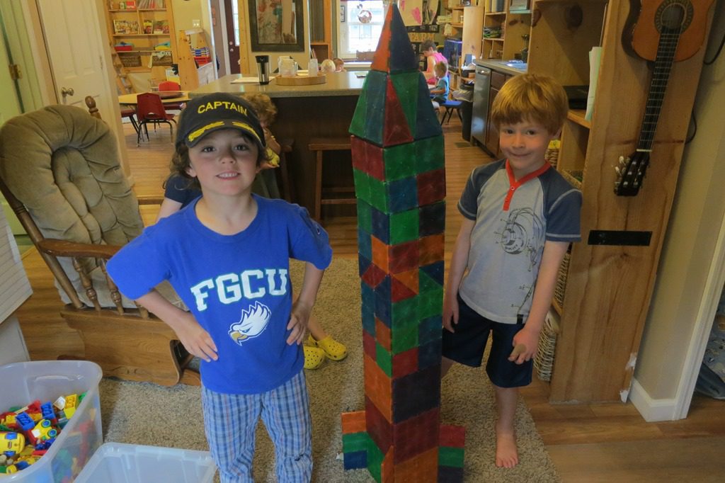 Building block construction occurred this morning in the habitrail area. We worked together to create a structure where friends participated in play together.