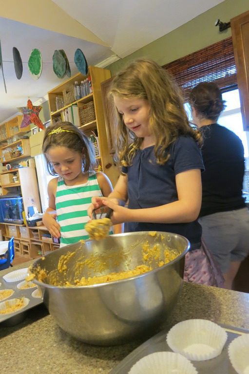 It was a ‘muffin making’ morning! Friends pitched in to make our afternoon snack: Healthy Applesauce Oat Muffins. Friends had a conversation around the island about the muffins we were about to make. We talked about the ingredients along with the steps we were going to take to get to our goal: an awesome PM snack!