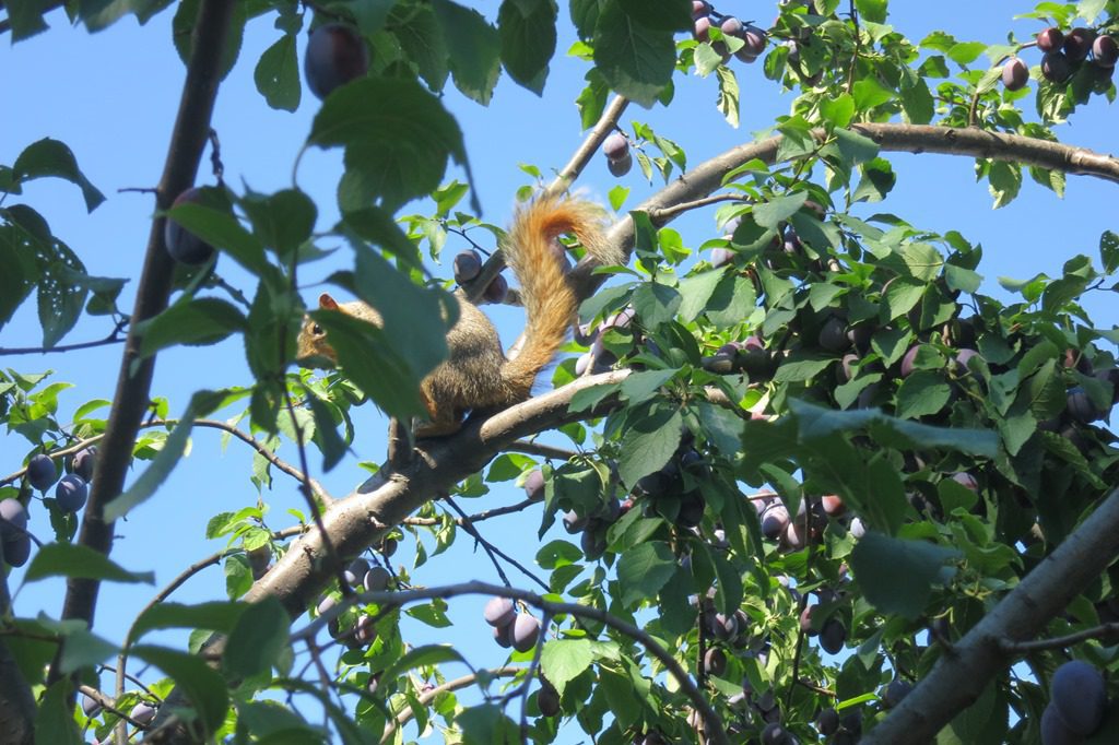 The plums are so abundant a squirrel friend came to enjoy them as well: