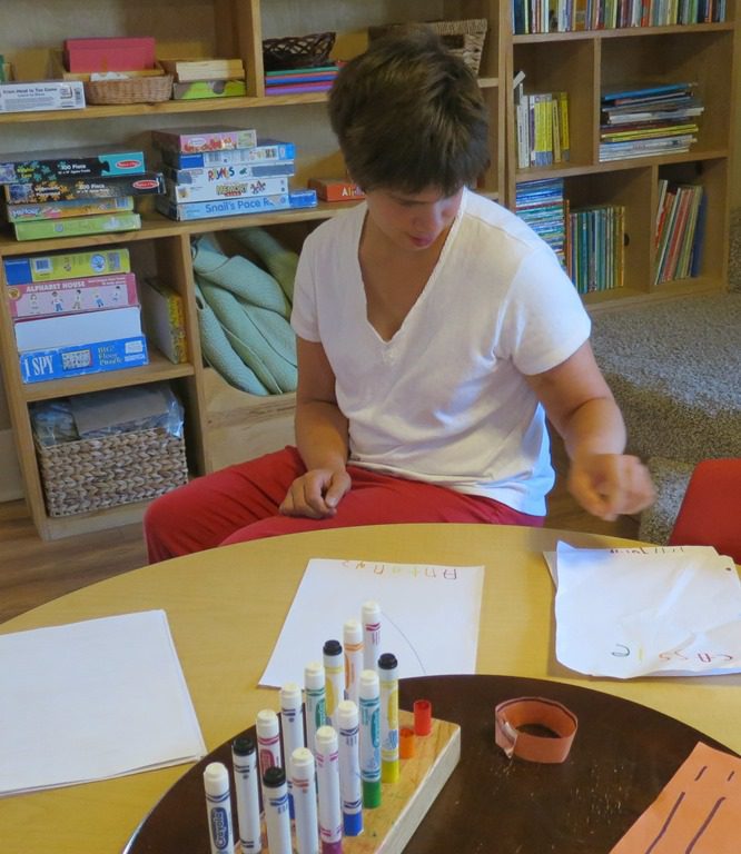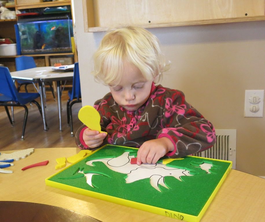 This morning was a perfect example, as every single Wee Friend was happily engaged in self-directed work. Every area of the house was utilized: puzzles at the round table, drawing at the art table, building in the back, reading in the reading area and so much more.
