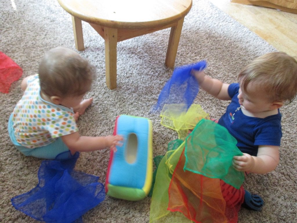 Ruby and David pulled the colorful tissues out of their holder and tossed them around.