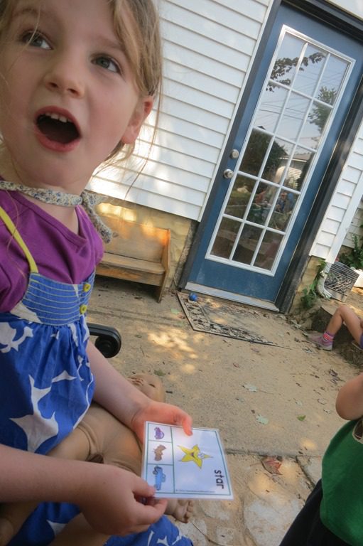 Because we did this activity outside, many other friends were interested in joining as well. Even though our younger friends needed more teacher assistance, this provided a great opportunity to simply introduce the idea of rhyming words.