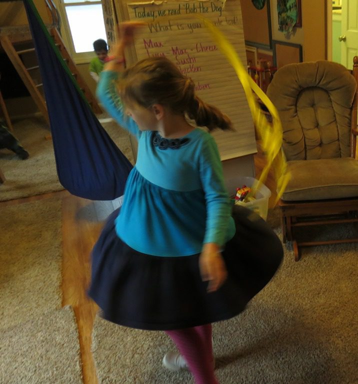 We also had a dance party, complete with ribbon streamers!