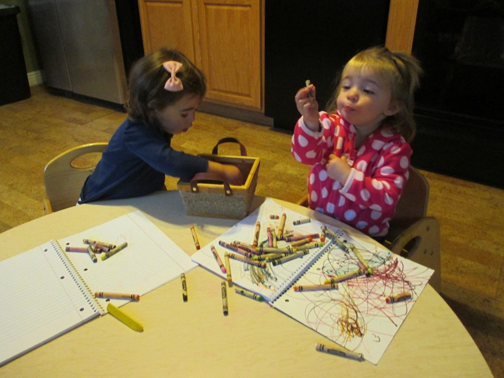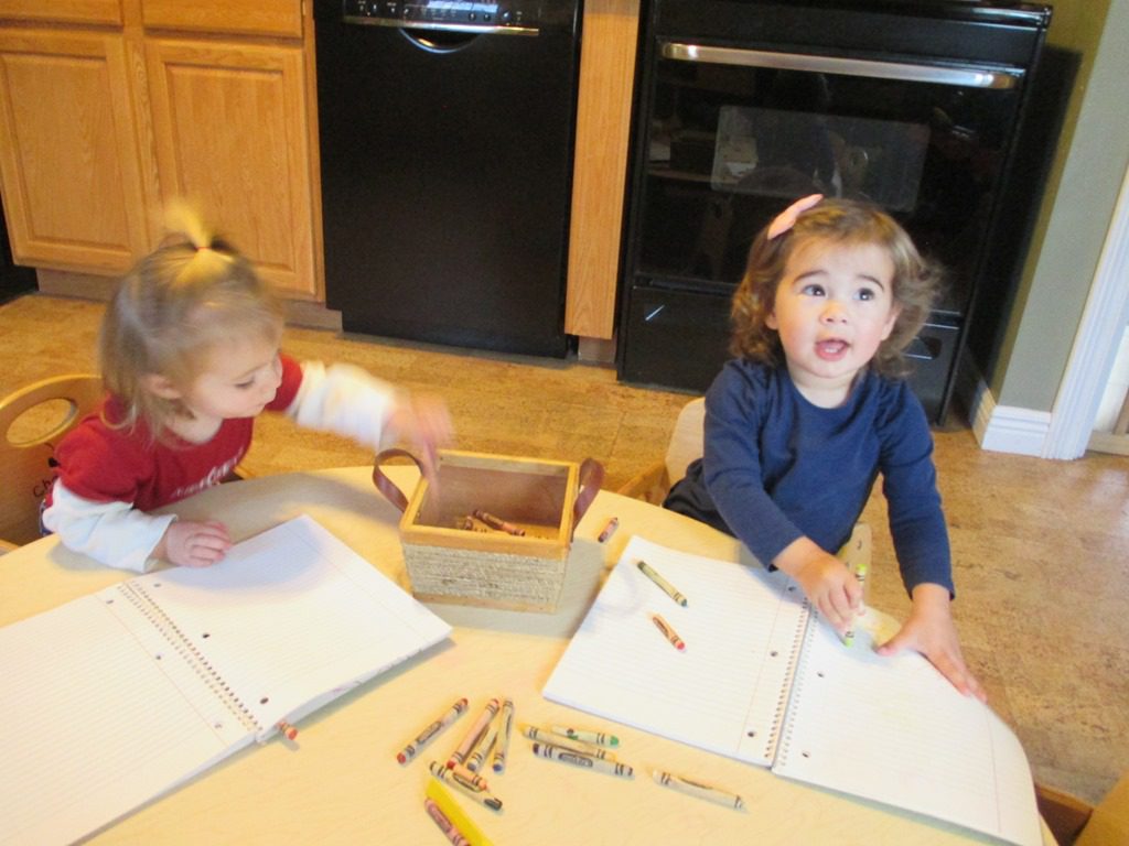 Rosemary and Anna colored in their personal notebooks this morning. They chose which crayons to use very carefully.