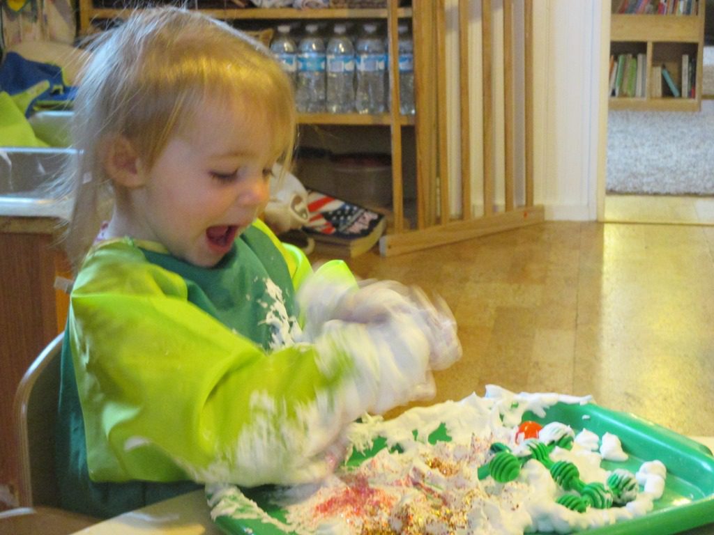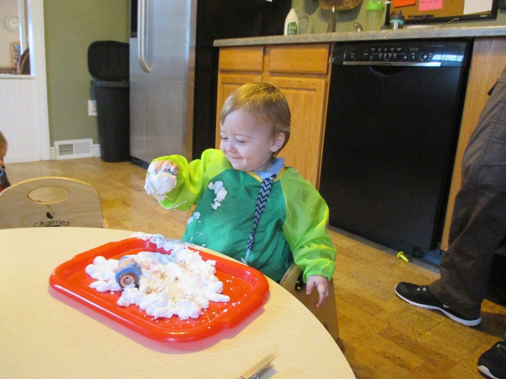 They started with shaving cream this morning.