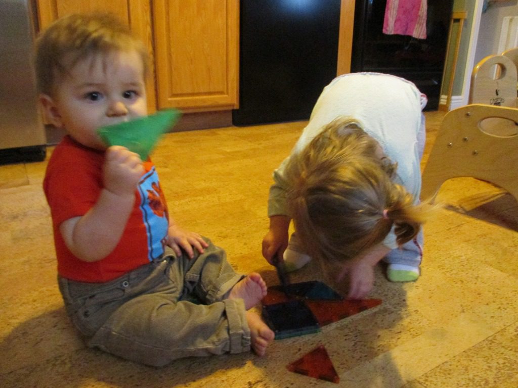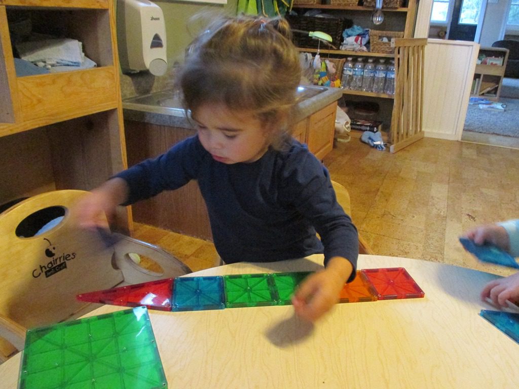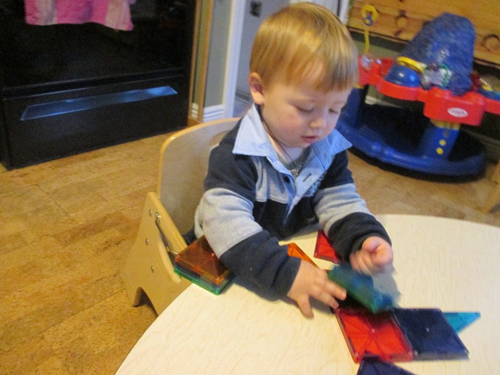 In the afternoon, they played with the Magna-Tiles. They all made their own imaginative structures. Anna and Rosemary also helped Franklin make some of his own.