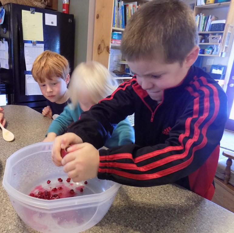So it was quite a surprise to see all the seeds inside the pomegranate. Friends worked really hard to squeeze the seeds out. Eventually a wooden spoon was used to bang the seeds out of the flesh too.