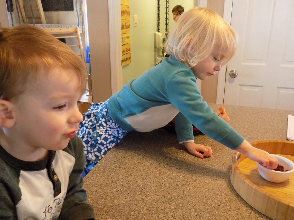 Wee Sprouts: Green and red bell peppers. Breakfast: Whole grain oatmeal and fresh pears. Lunch: Hummus on whole wheat tortillas with carrots, bananas, and clementines. Snack: Fresh pears and homemade popcorn with butter.