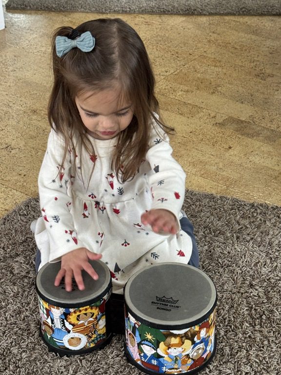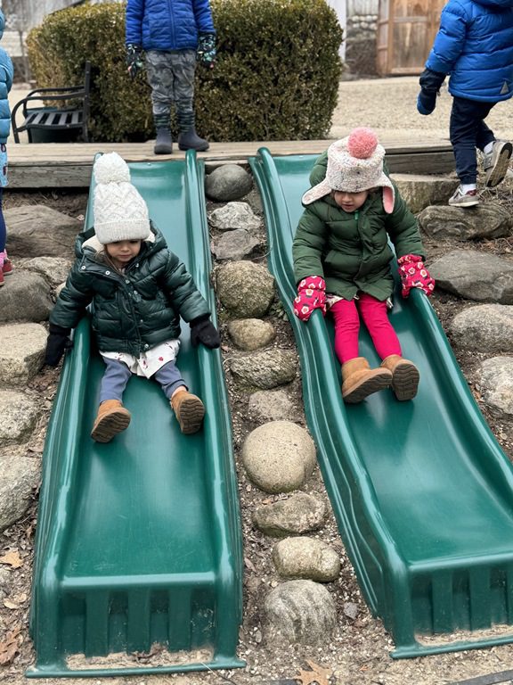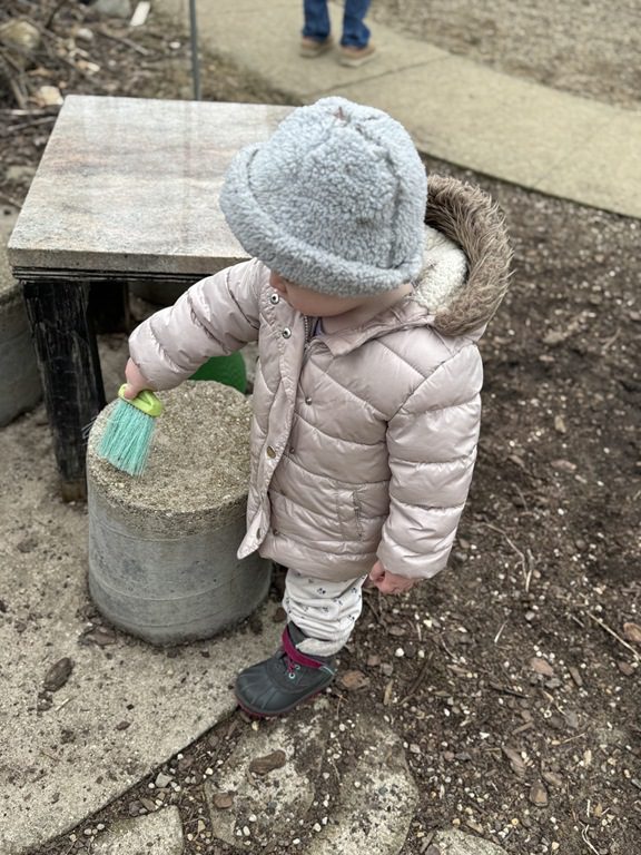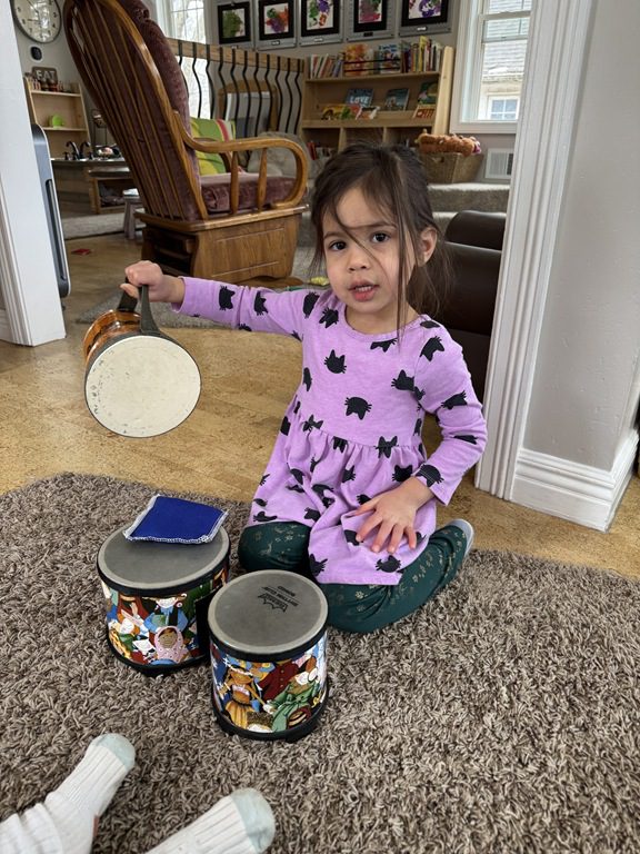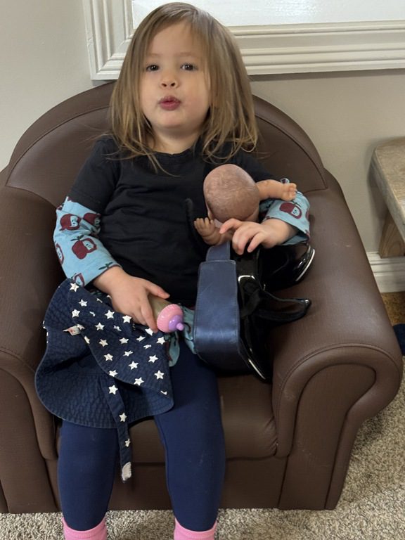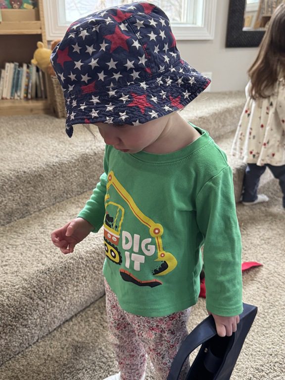 Friends dressed up in hats and purses this morning , bringing them around the room and even offering one to baby Rose!