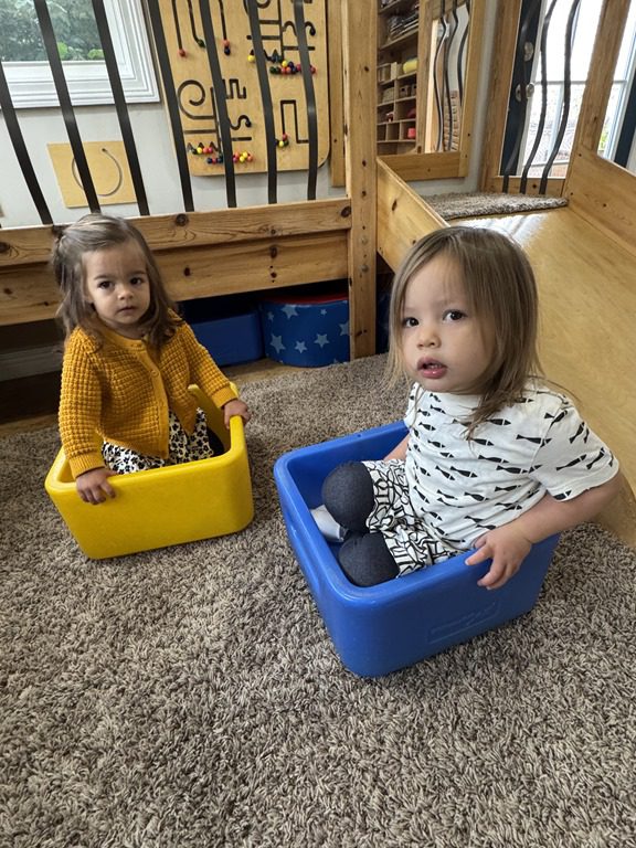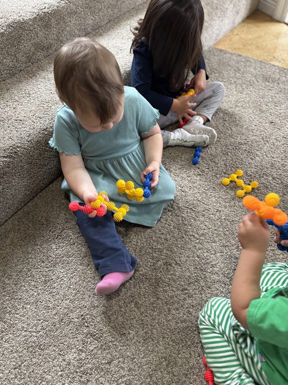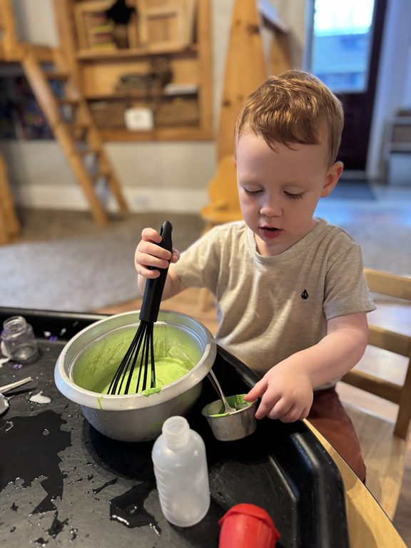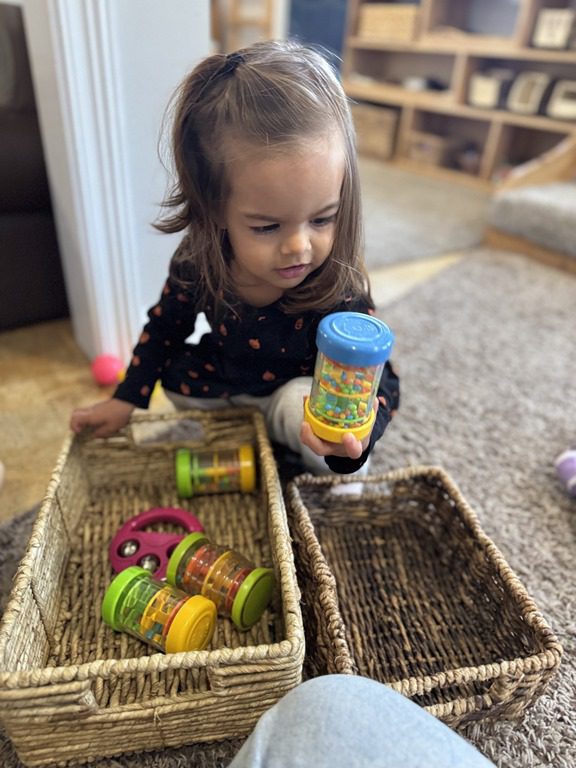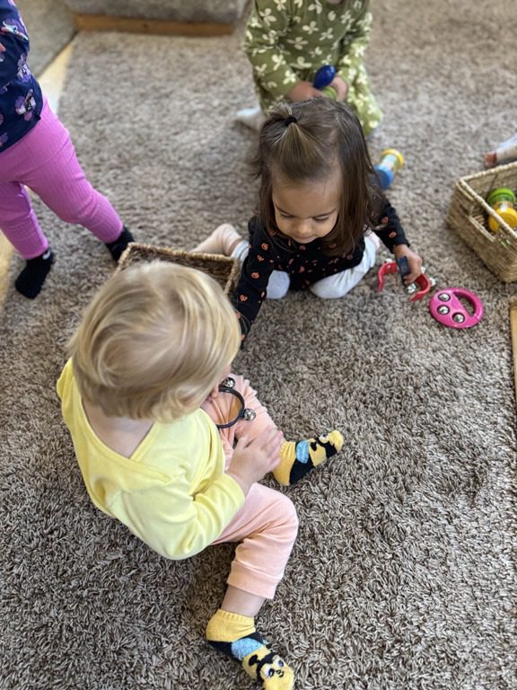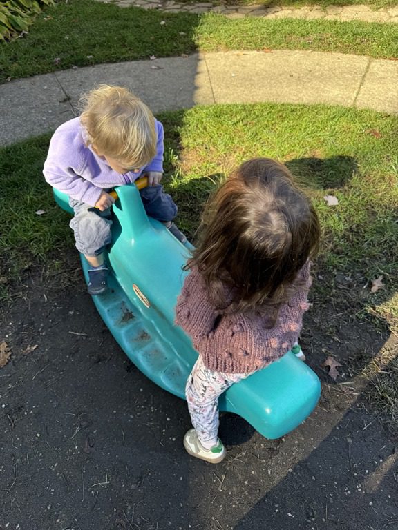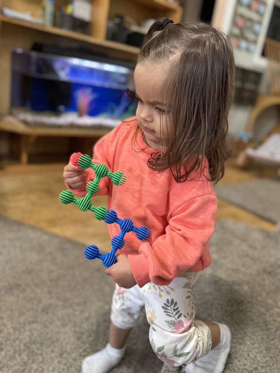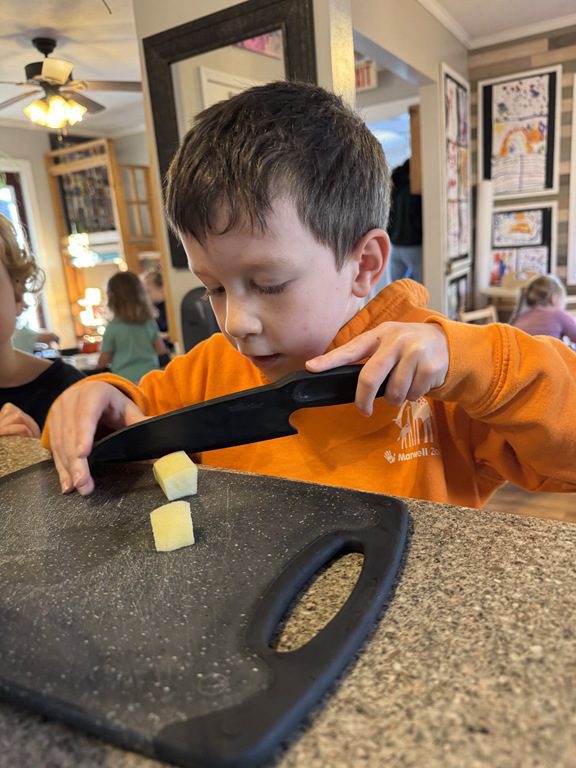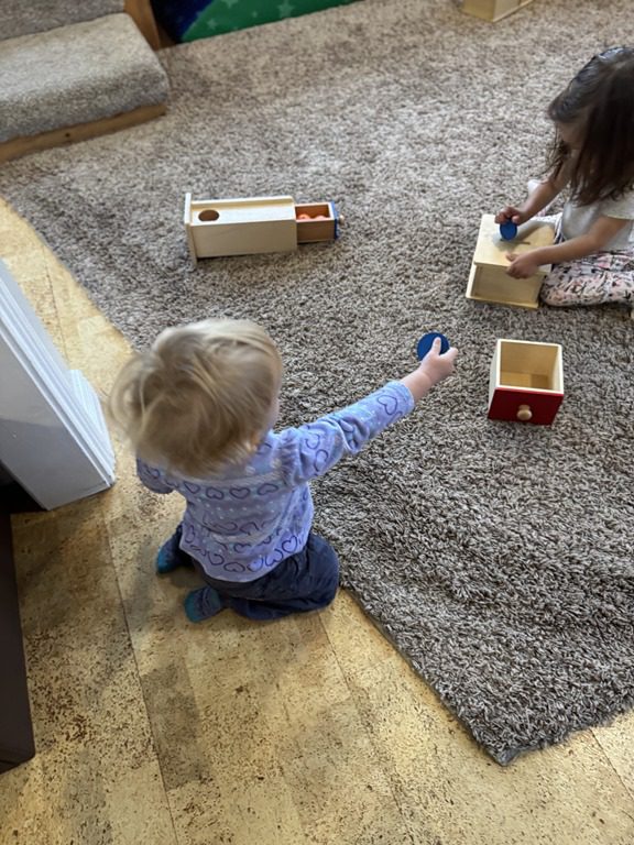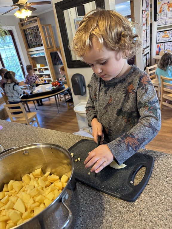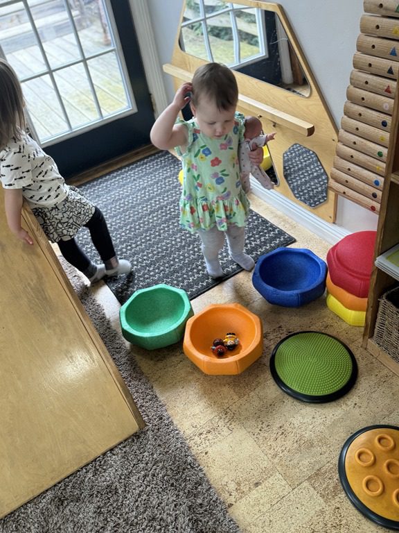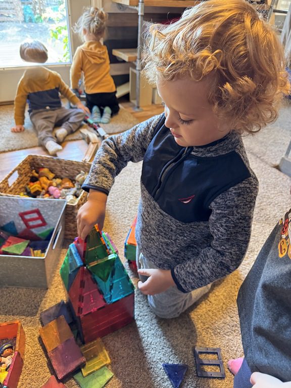 Today we explored how to use a scale. We tried a variety of objects to contrast against each other from stones to puff balls. We found that our heavier objects tipped the scale down. We also found we could put similar objects on either side of the scale to balance it. Many friends enjoyed taking things in and out and watching the scale tip up and down. Many of our kids seemed to have a good grasp of what was happening and why as they finished exploring!
