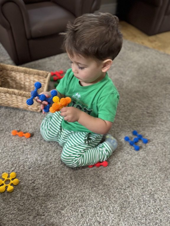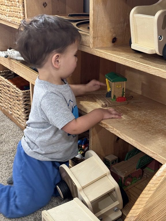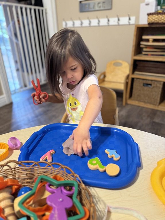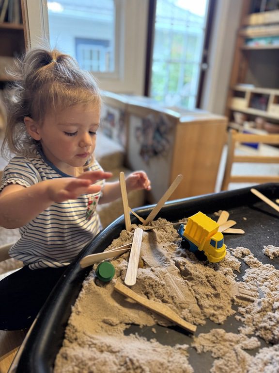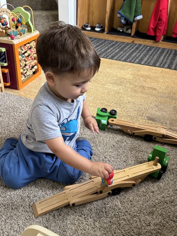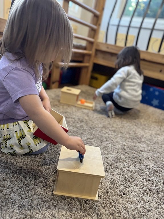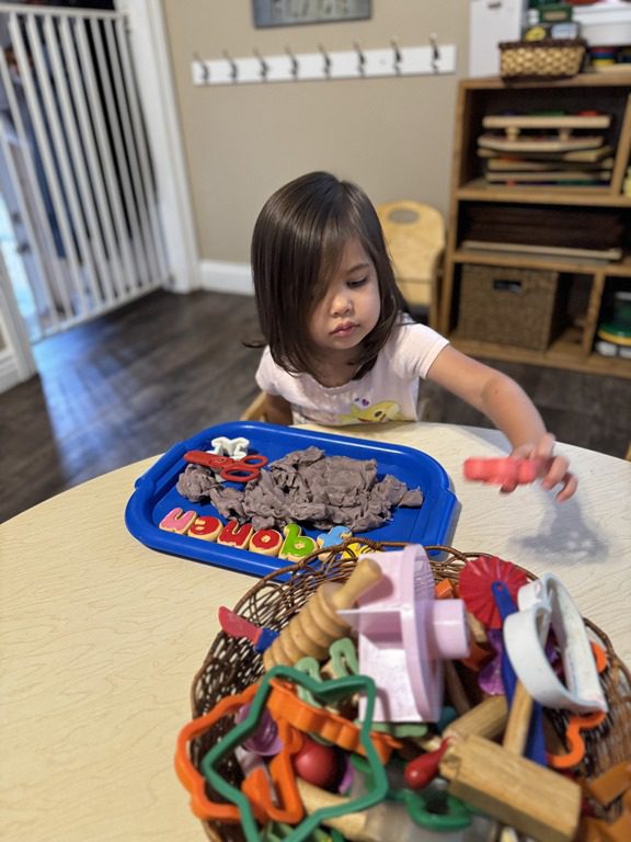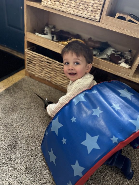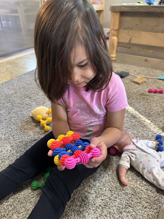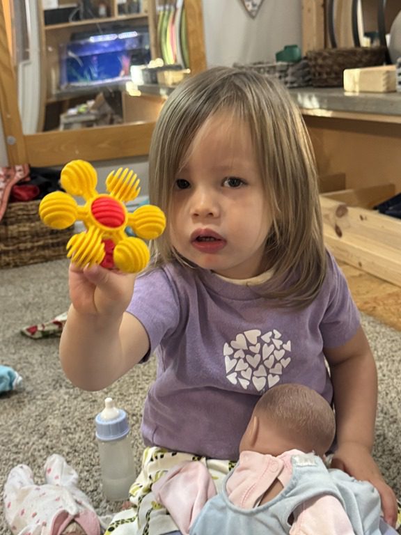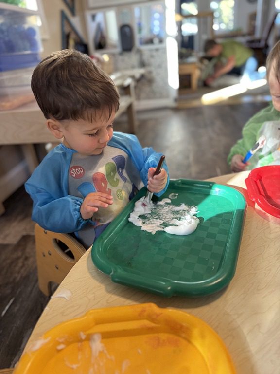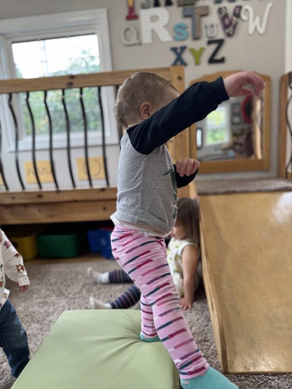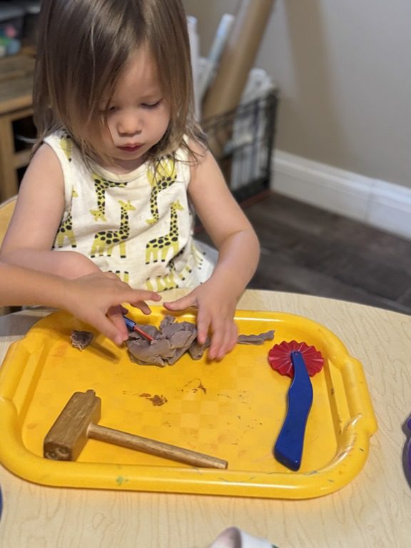 Today we explored how to use a scale. We tried a variety of objects to contrast against each other from stones to puff balls. We found that our heavier objects tipped the scale down. We also found we could put similar objects on either side of the scale to balance it. Many friends enjoyed taking things in and out and watching the scale tip up and down. Many of our kids seemed to have a good grasp of what was happening and why as they finished exploring!