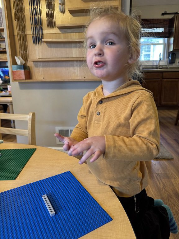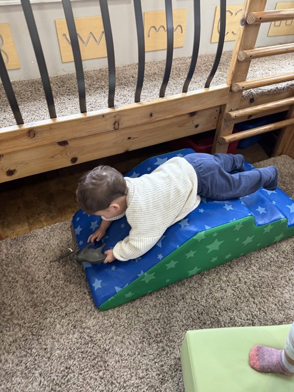 Later on in group, we continued using comparison words such as taller, shorter, heavier, and lighter as we read, ‘What Do You Do With A Tail Like This?’. We looked at several different animal features such as nose, mouth, tail, and ears. We saw just the feature, not the whole animal and had to guess which feature belonged to what animal.