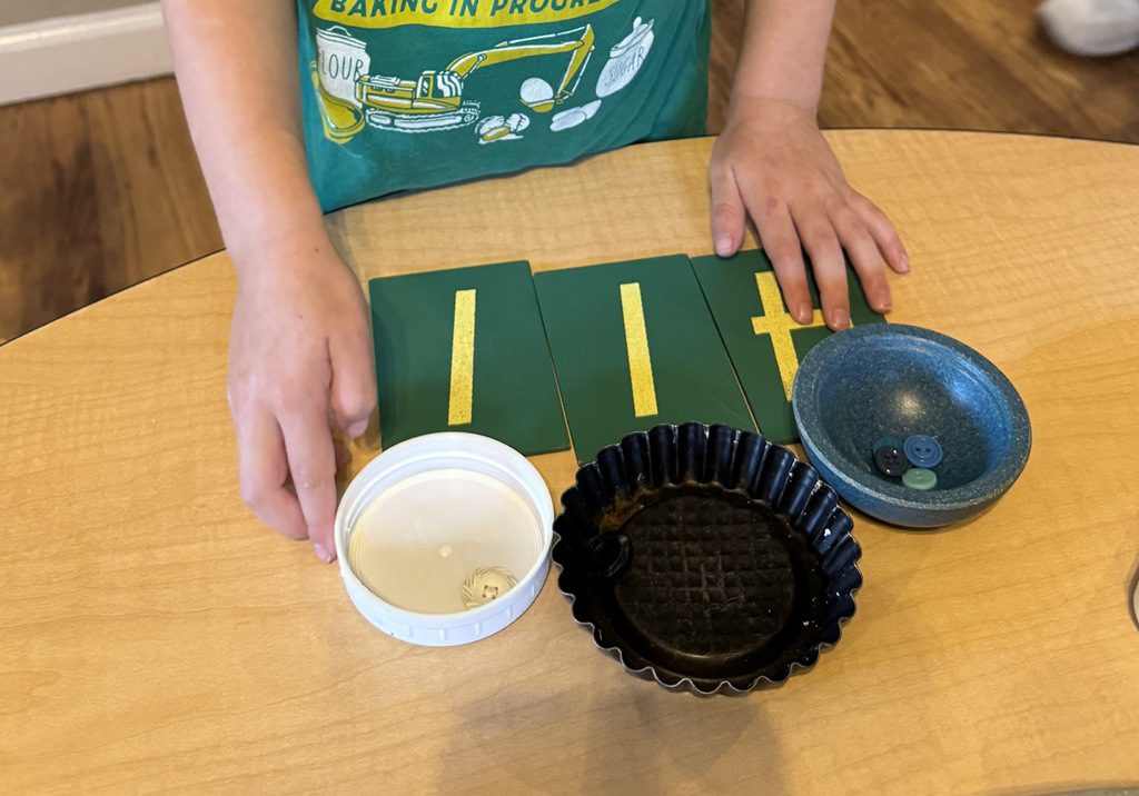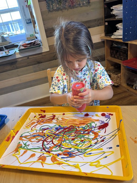 Today, we used a painting activity to practice retaining information and then following a loose set of directions in order. The project was intended to build focused attention, memory and verbalization.