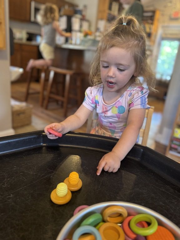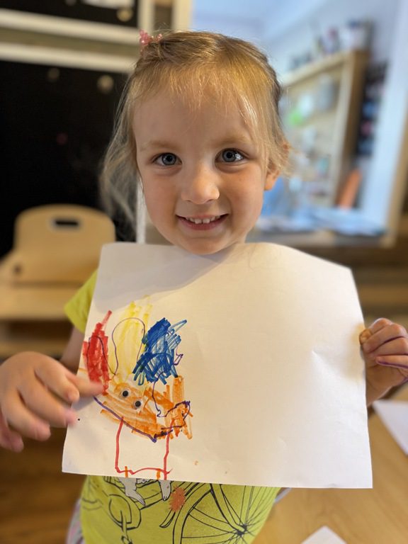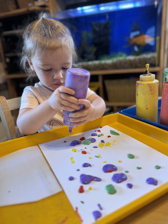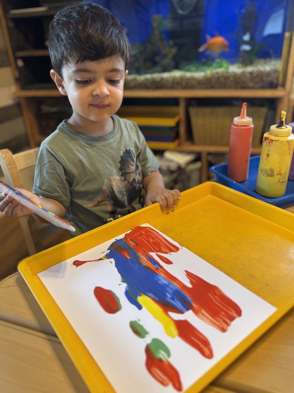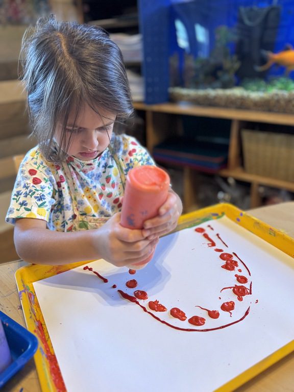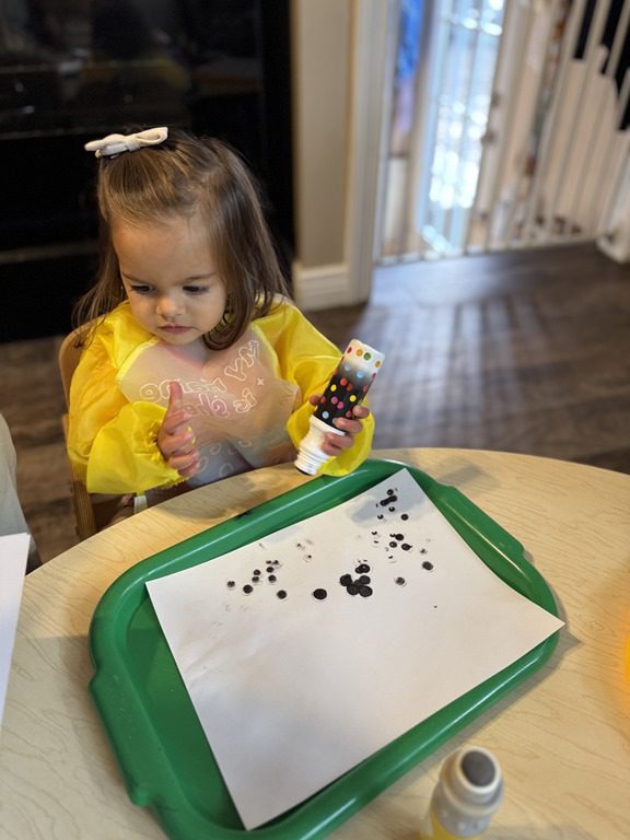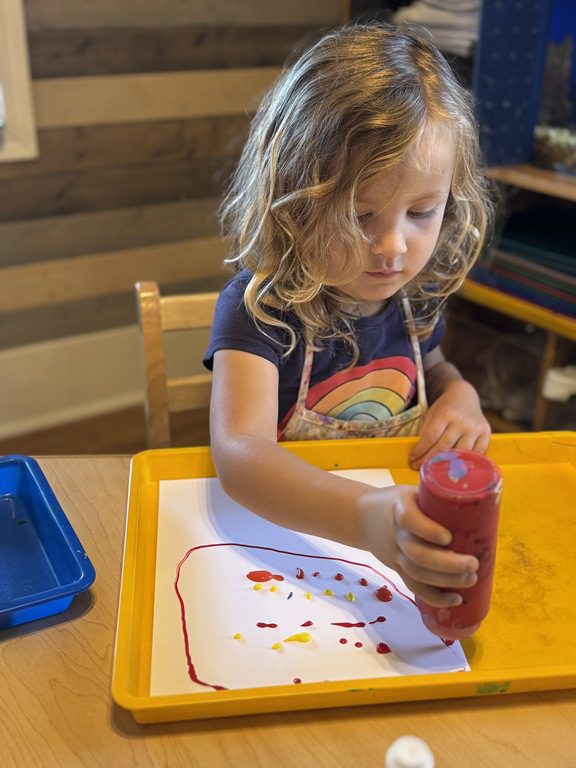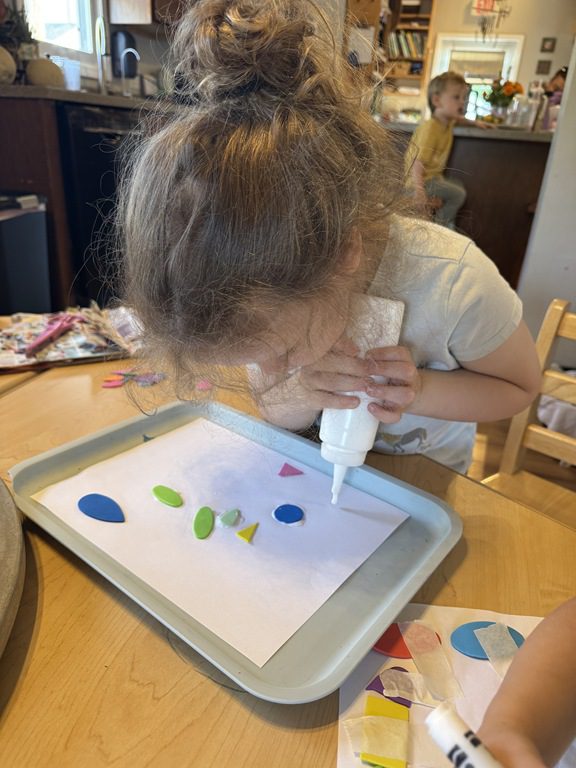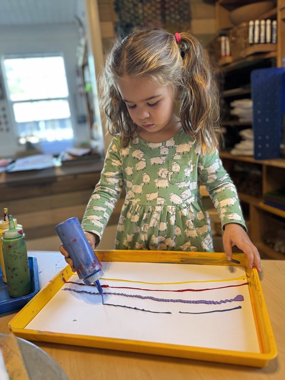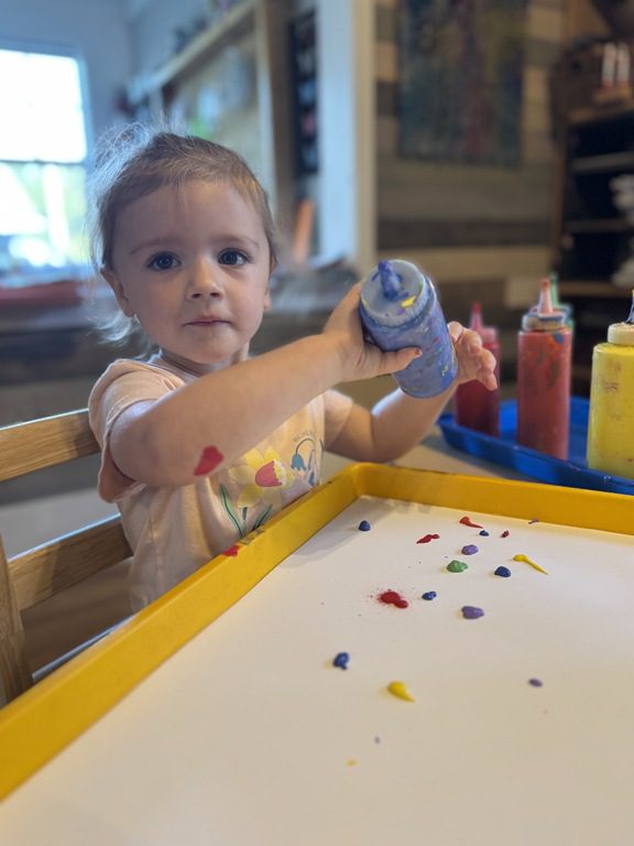 Though we were using paint to draw interest in practicing following a step by step process, this wasn’t really an “art” project. I feel it’s important to specify that our “art” projects are about open free expression and experimentation with very little instruction if any.