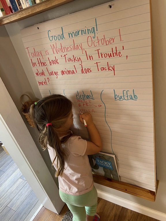 Later on in PREK1 group, we read the book and made sure to pay attention to the characters, setting, and various specific events that occurred in the story. We’ve been using the words beginning, middle and end when talking about events in a story.