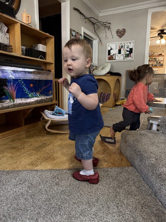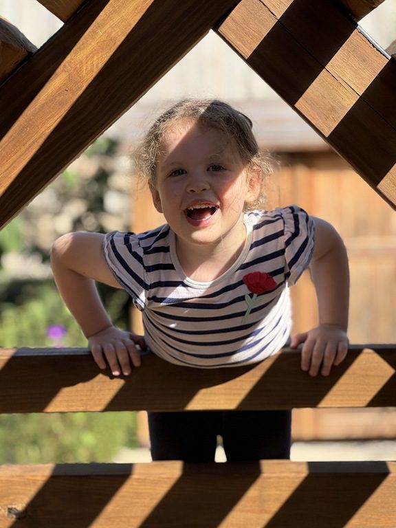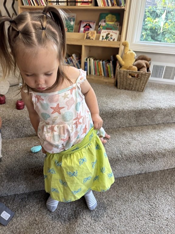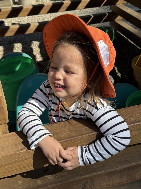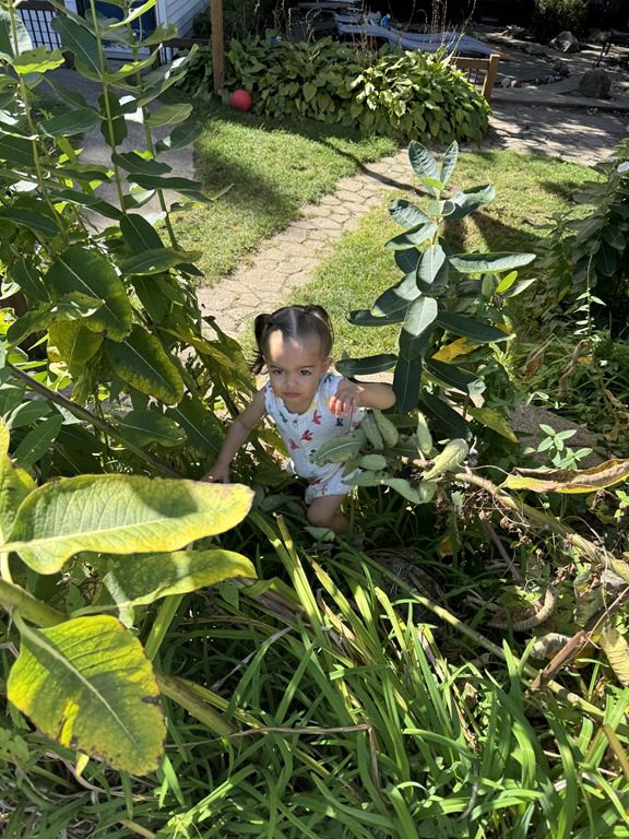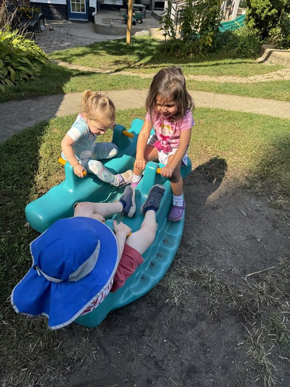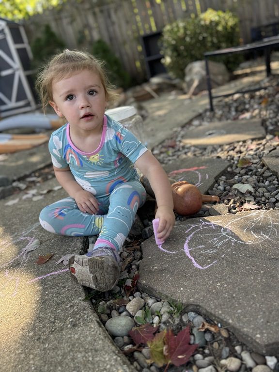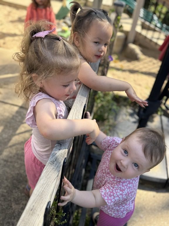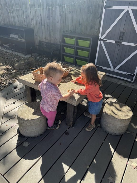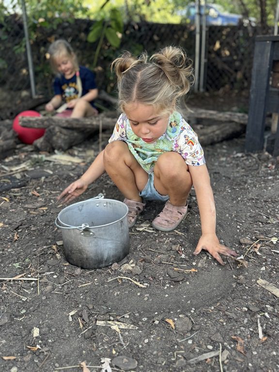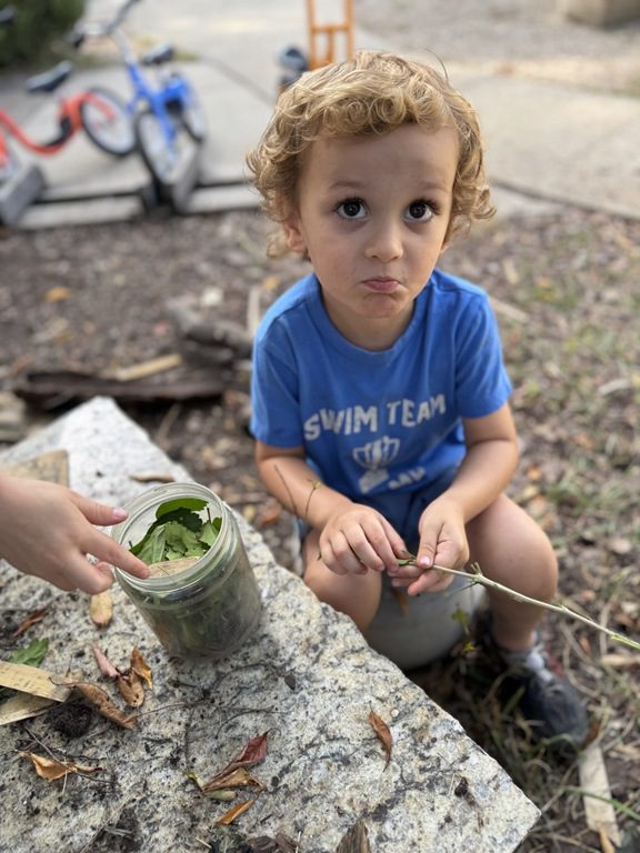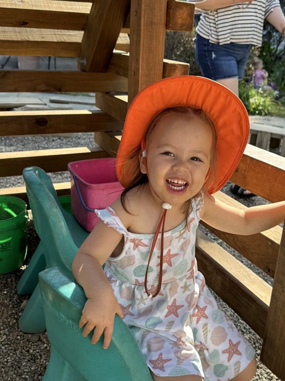 We then headed outside to watch an ant crawl on the cement, scoop in the sandbox, go down the slide and walk with a baby doll.