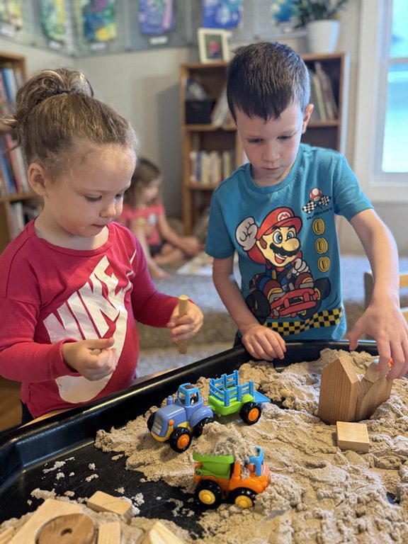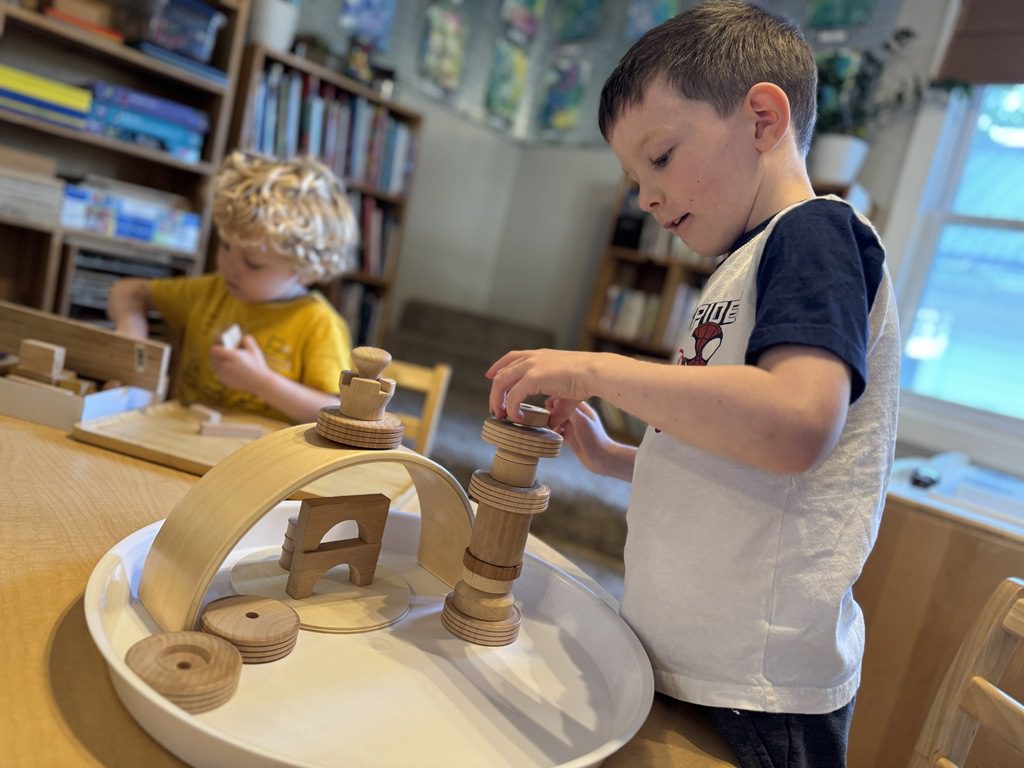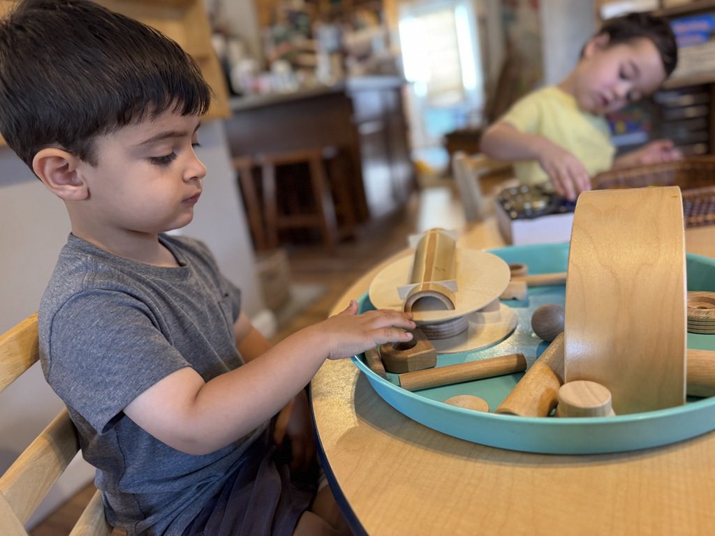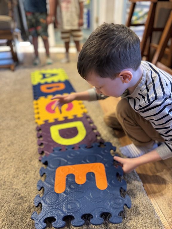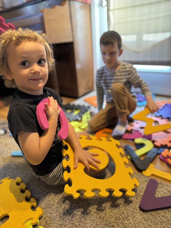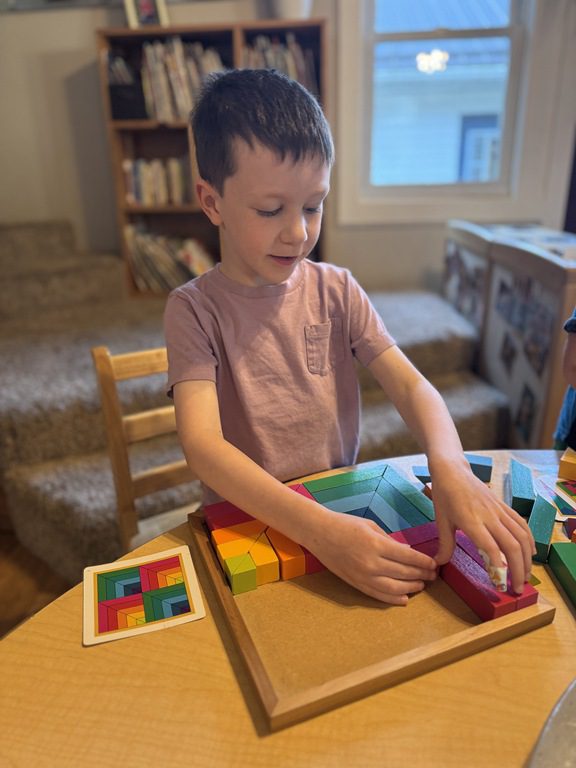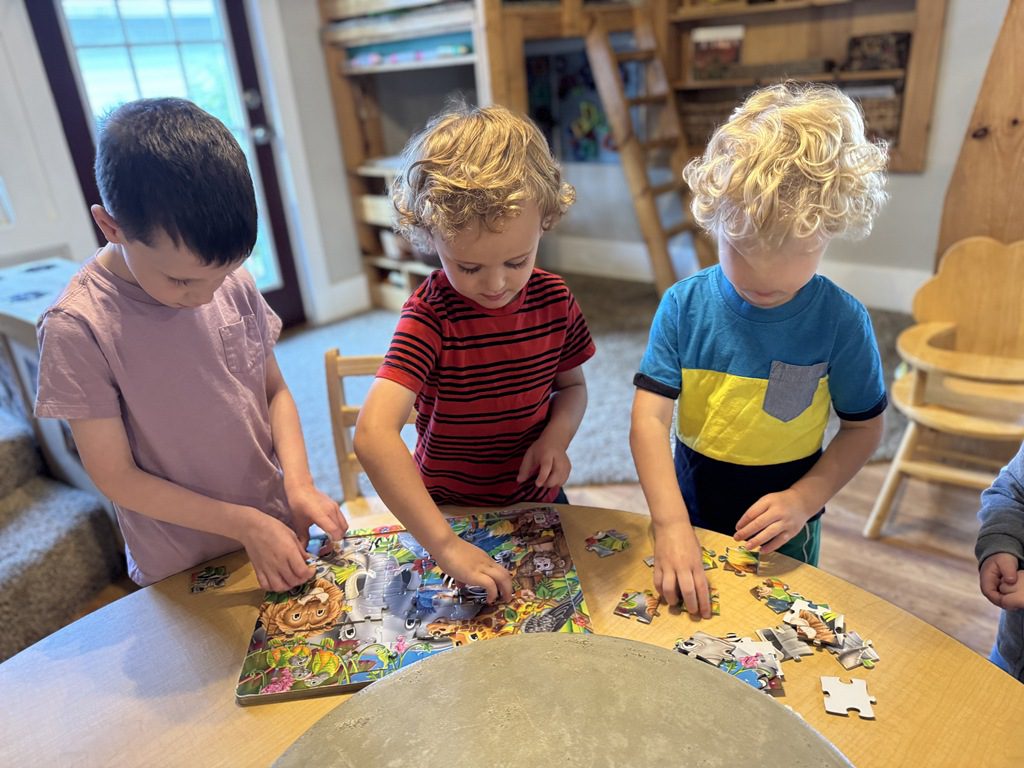 Another interest that popped up for the morning was solving puzzles.  Some kids have been able to put together our most difficult pattern play puzzle.  Several kids got interested in trying more difficult puzzles and challenging themselves.  We saw some great team work as kids helped each other with struggles or gave each other pointers.