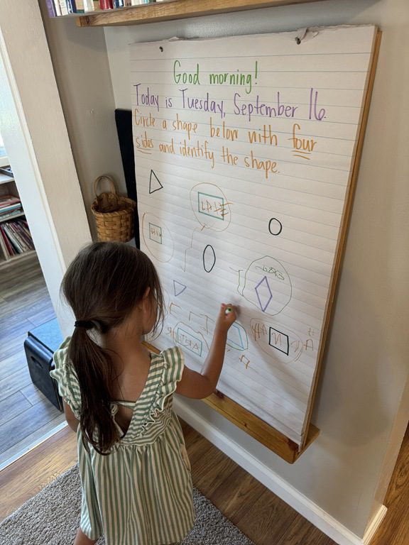We continued talking about shapes for our PREK1 sign in today! Each group member came to the board where we walked through a series of steps.
