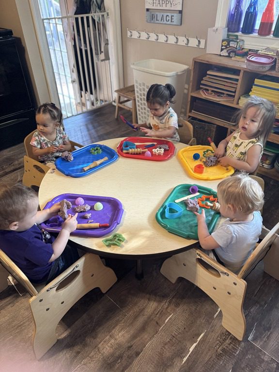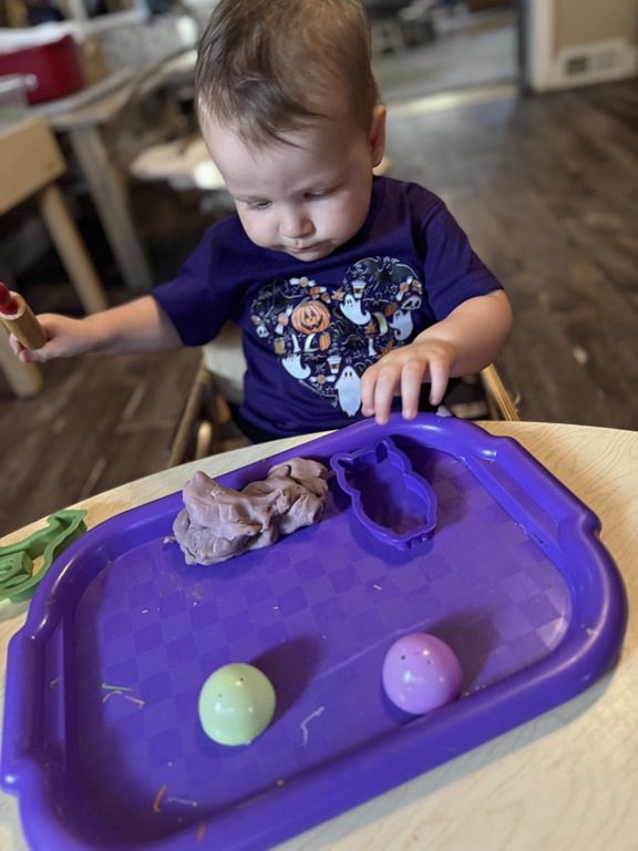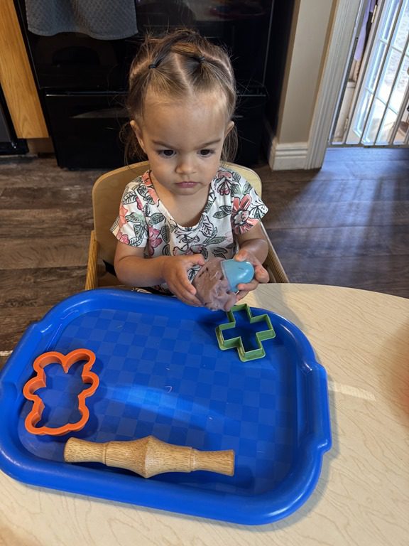 We then headed into the kitchen to engage in a sensory activity with playdough and the tools.