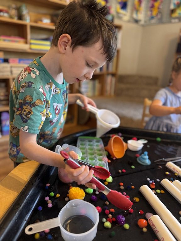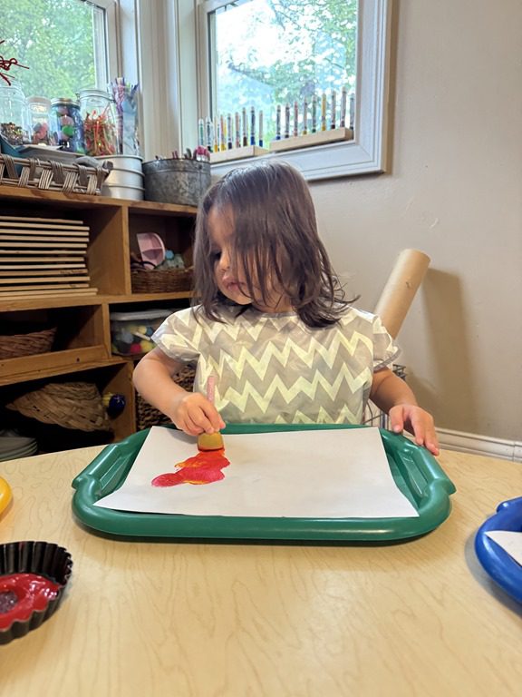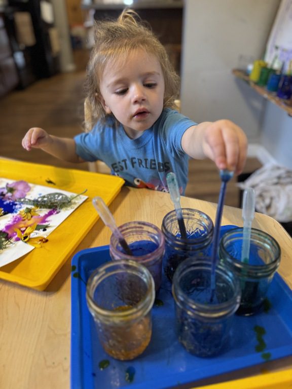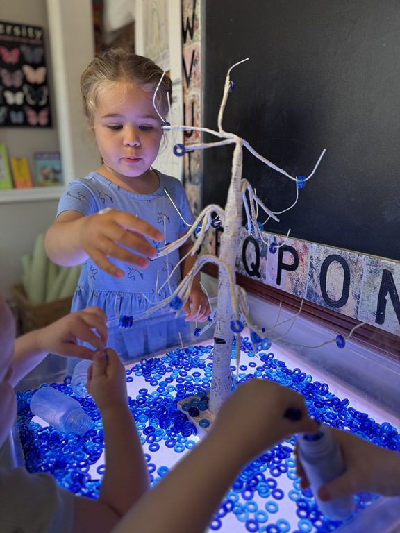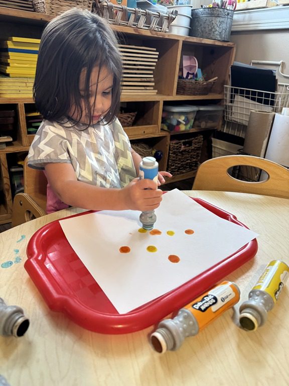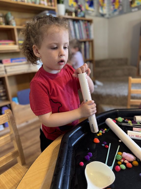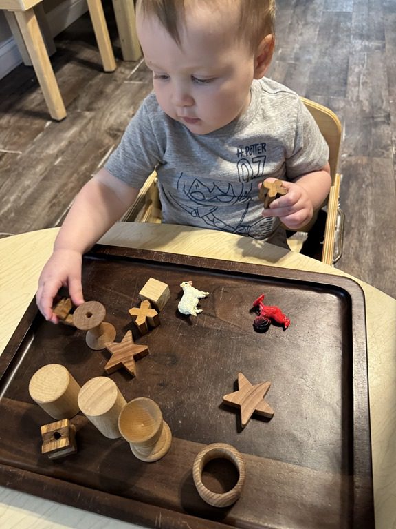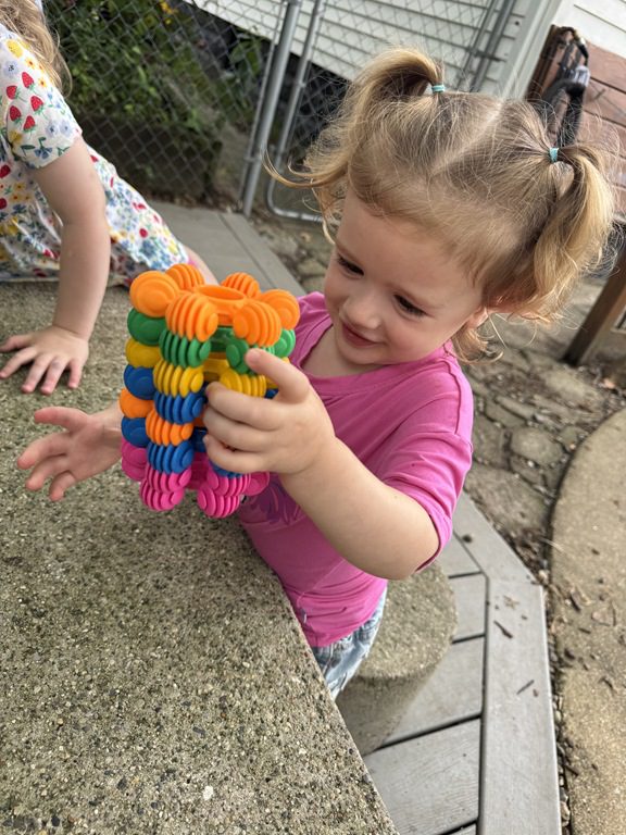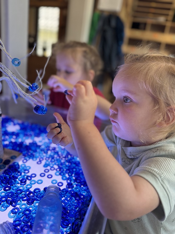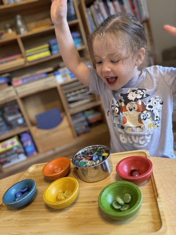 This morning we practiced sorting by color at our welcome activity. We found all the right places for the colored beads. We practiced color names and counting as well. Some of us got so excited about sorting that it became a full body experience :).